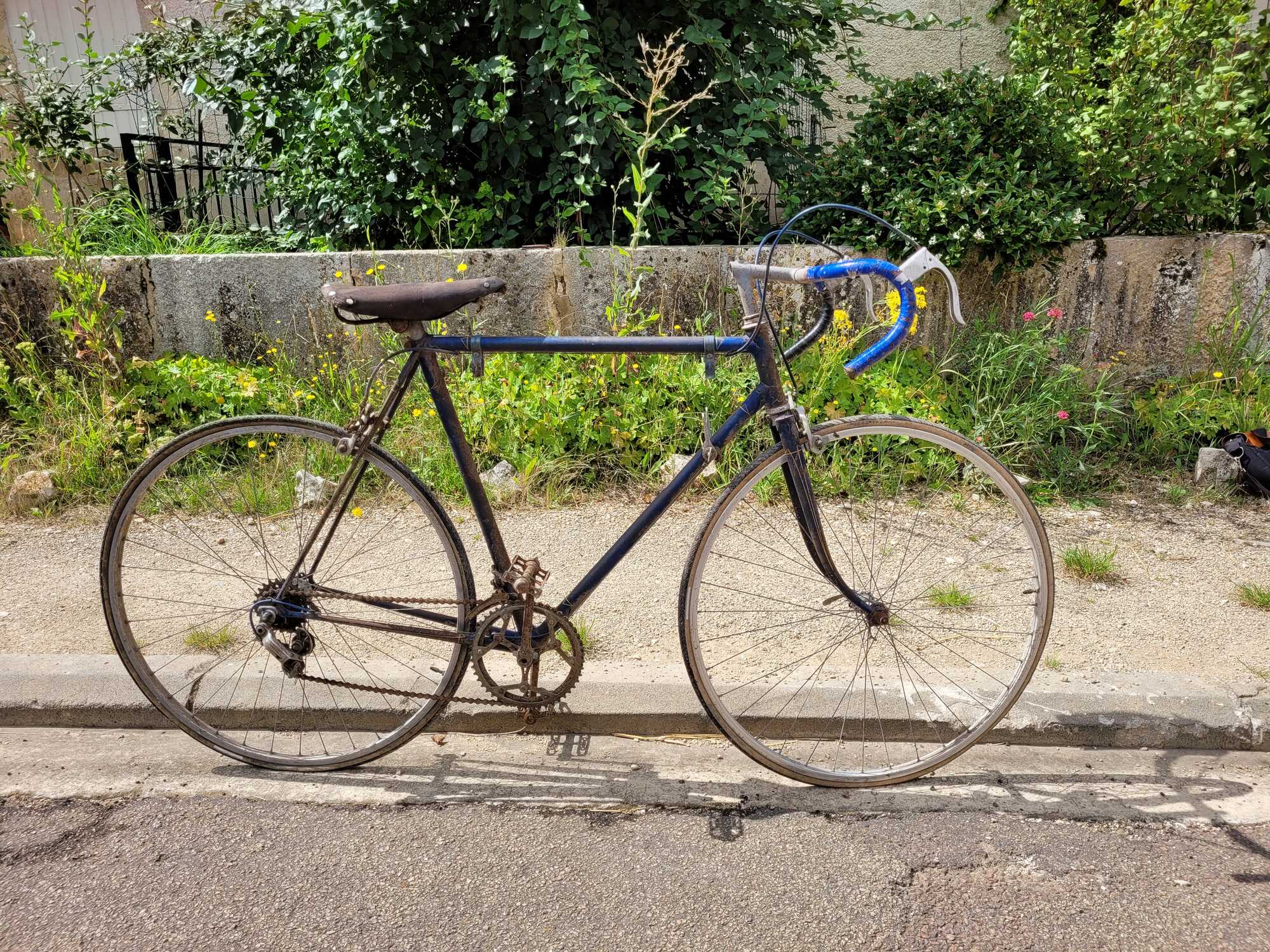 Hoop toch te ontdekken wat het ooit was. Als het een Mercier is, gaat ie roze worden, net als waar Poulidor ooit op rondreed :mrgreen: