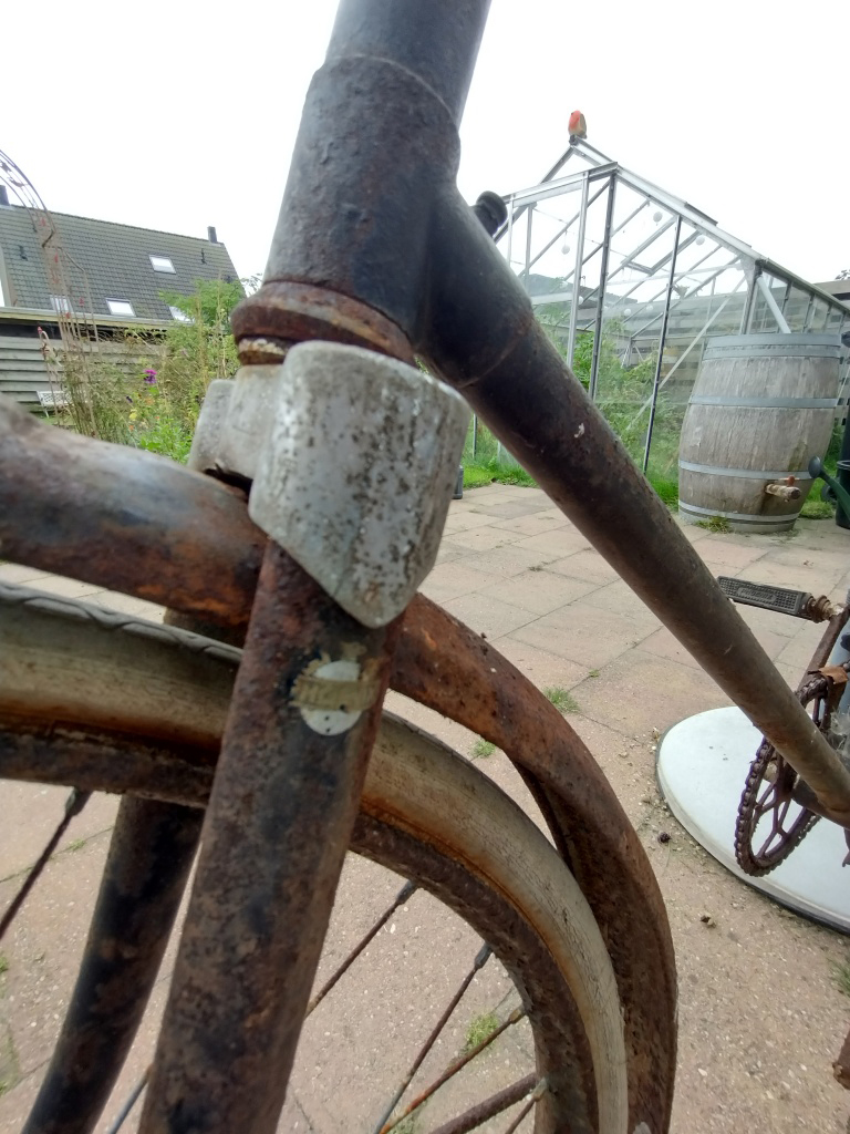 deraptor schreef: ↑2 sep 2021, 21.20 Ik ging een dorp verderop een Phoenix zadeltas halen en kwam terug met een complete fiets. Dat was niet mijn bedoeling en op het eerste gezicht lijkt het een rampprojectje, maar voor 15 euro kon ik 'm niet laten staanIs fikse bonk roest bij elkaar, maar (resten van) de Phoenix pedalen, voor- & achterlamp met Phoenix opdruk, balhoofdplaatje en transfers zijn nog aanwezig en ondanks de roestige ketting draait alles nog rond.