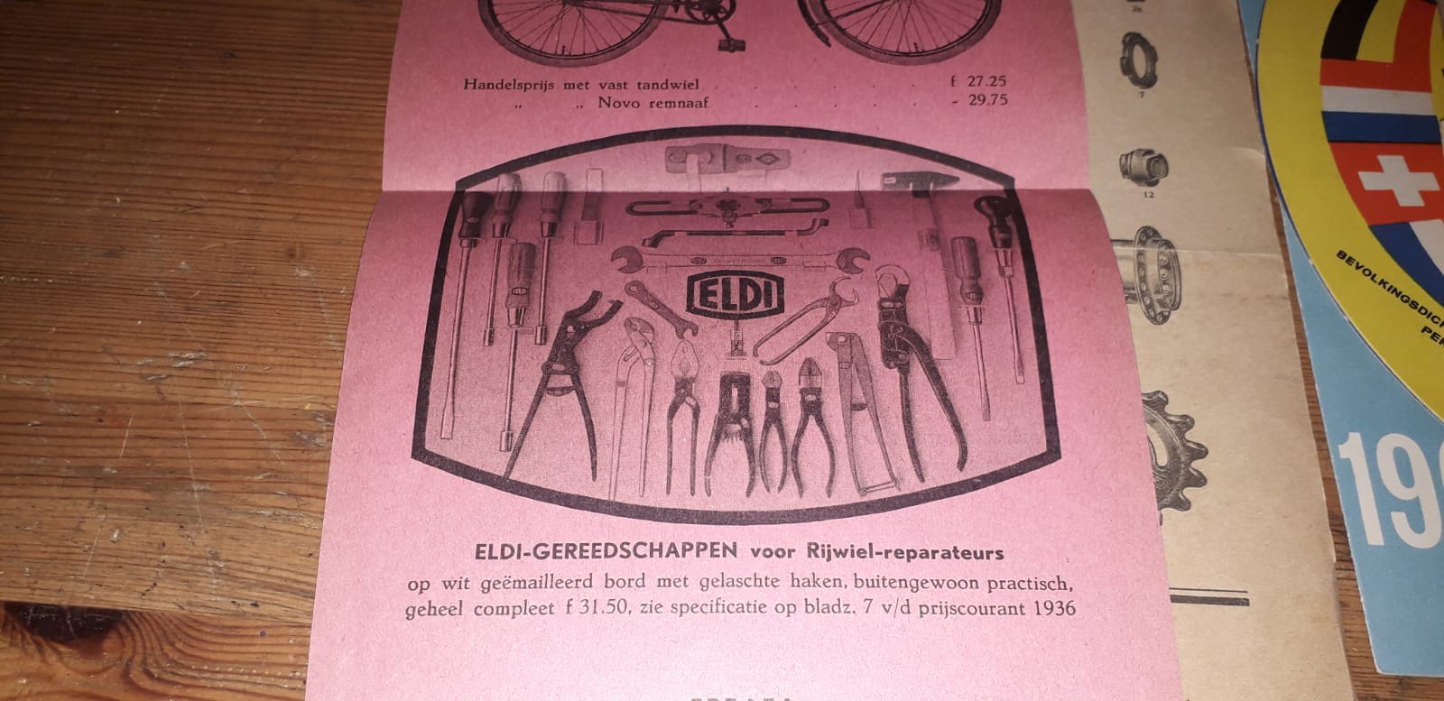 Staat een foto van een uitklapbaar bord, voor volgens mij bromfietsgereedschap.