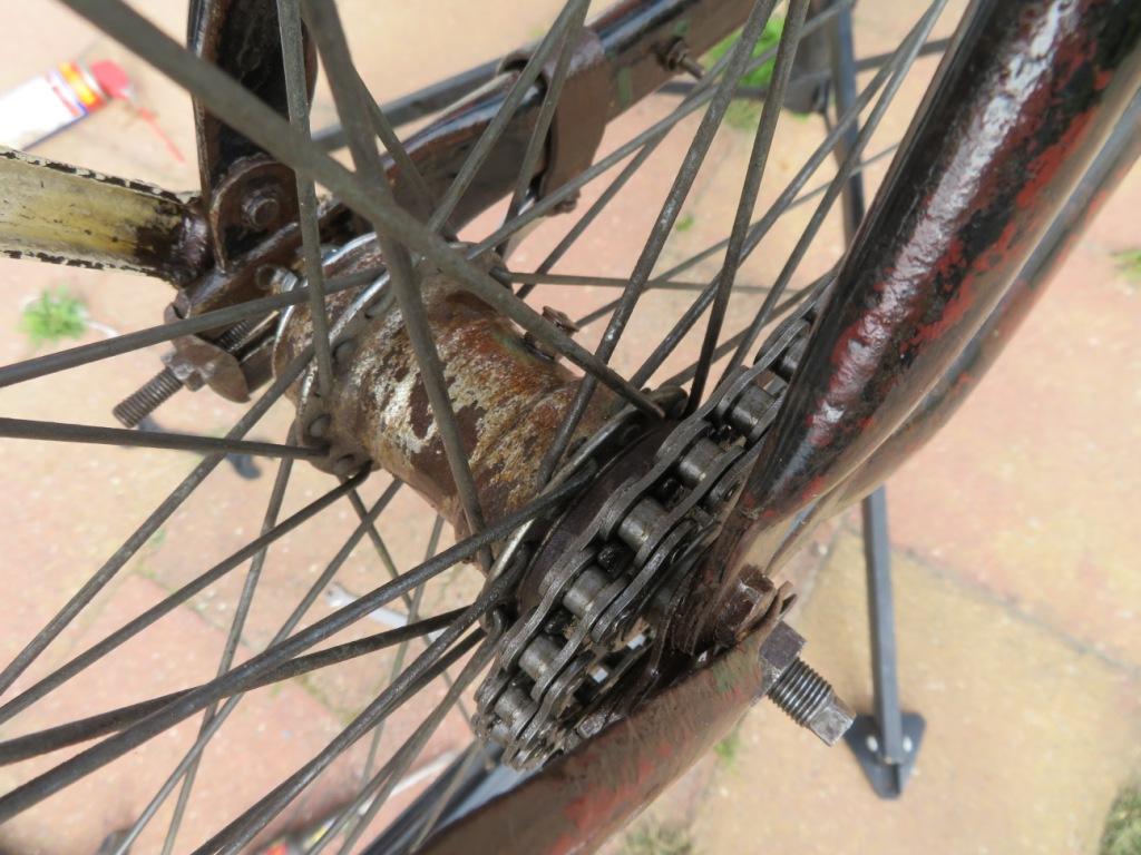 Ik viel voor deze fiets vanwege de vele grof gesmeerde lagen lak en alle deukjes en houtje touwtje reparaties. Deze fiets is decennia lang lomp gebruikt en dat zie je er aan af, en dat wilde ik behouden. Ik heb de laklagen opgeschuurd tot het punt waar het stabiel voelde, en daarna drie lagen blanke lak aangebracht. Transfers zijn nieuw maar heb ik licht opgeschuurd. Vervolgens dus de fiets technisch in orde gebracht, met o.a. een 415 Tsubaki motorketting... Handvatten, Phoenix zadeltas en pedalen opgescharreld... en het precies passende bakkerskrat (ook uit Leeuwarden) maakt het af
