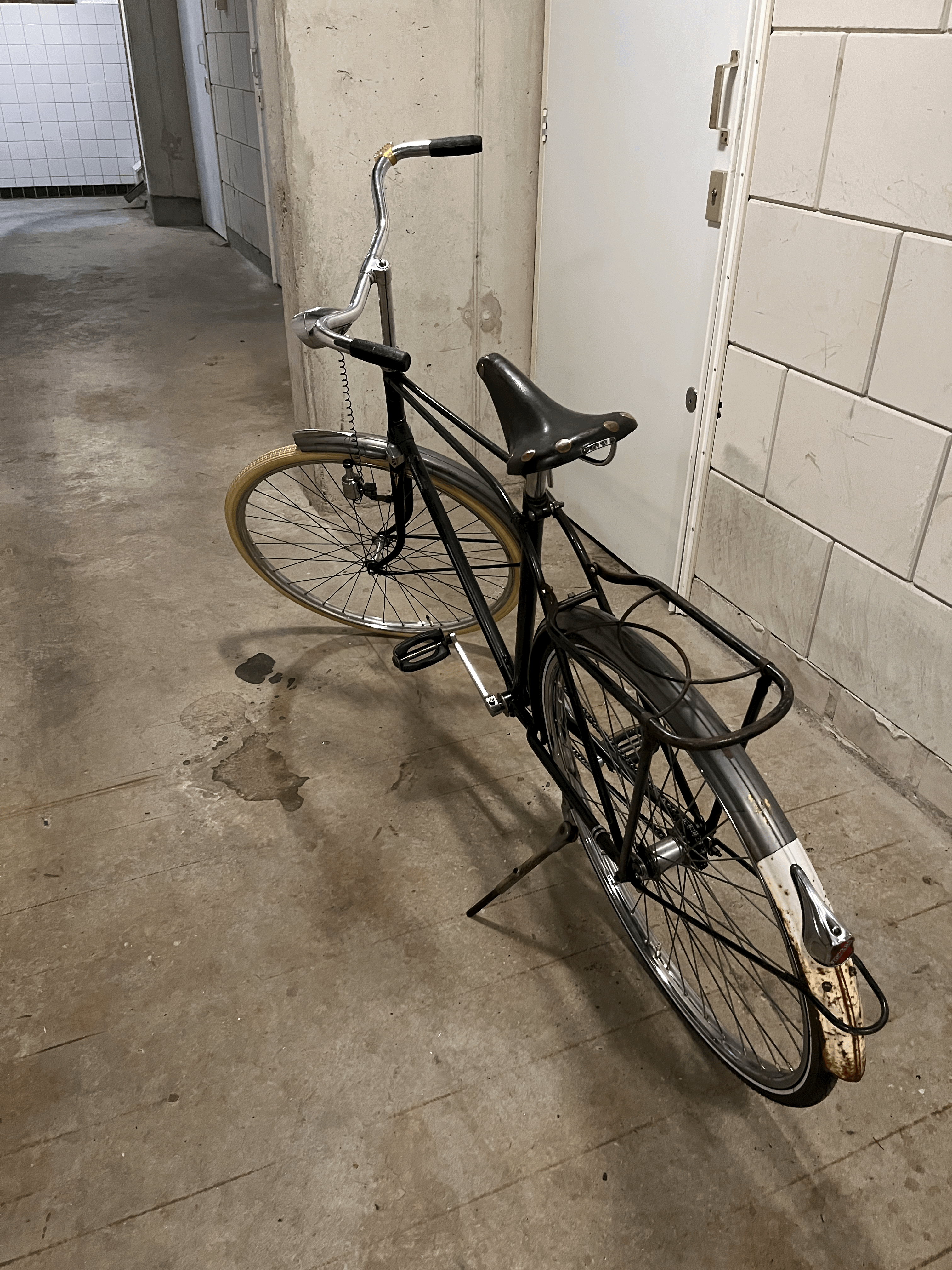 Die Dames grand sport uit Leiden is inderdaad behoorlijk aangetast, flink wat roest en behoorlijk verweerd. Er is denk ik wel nog wat van te maken; nadat de Heren Grand sport af is ga ik s kijken wat er over is en dan s zien of het de moeite waard is om er weer een complete fiets van te maken.