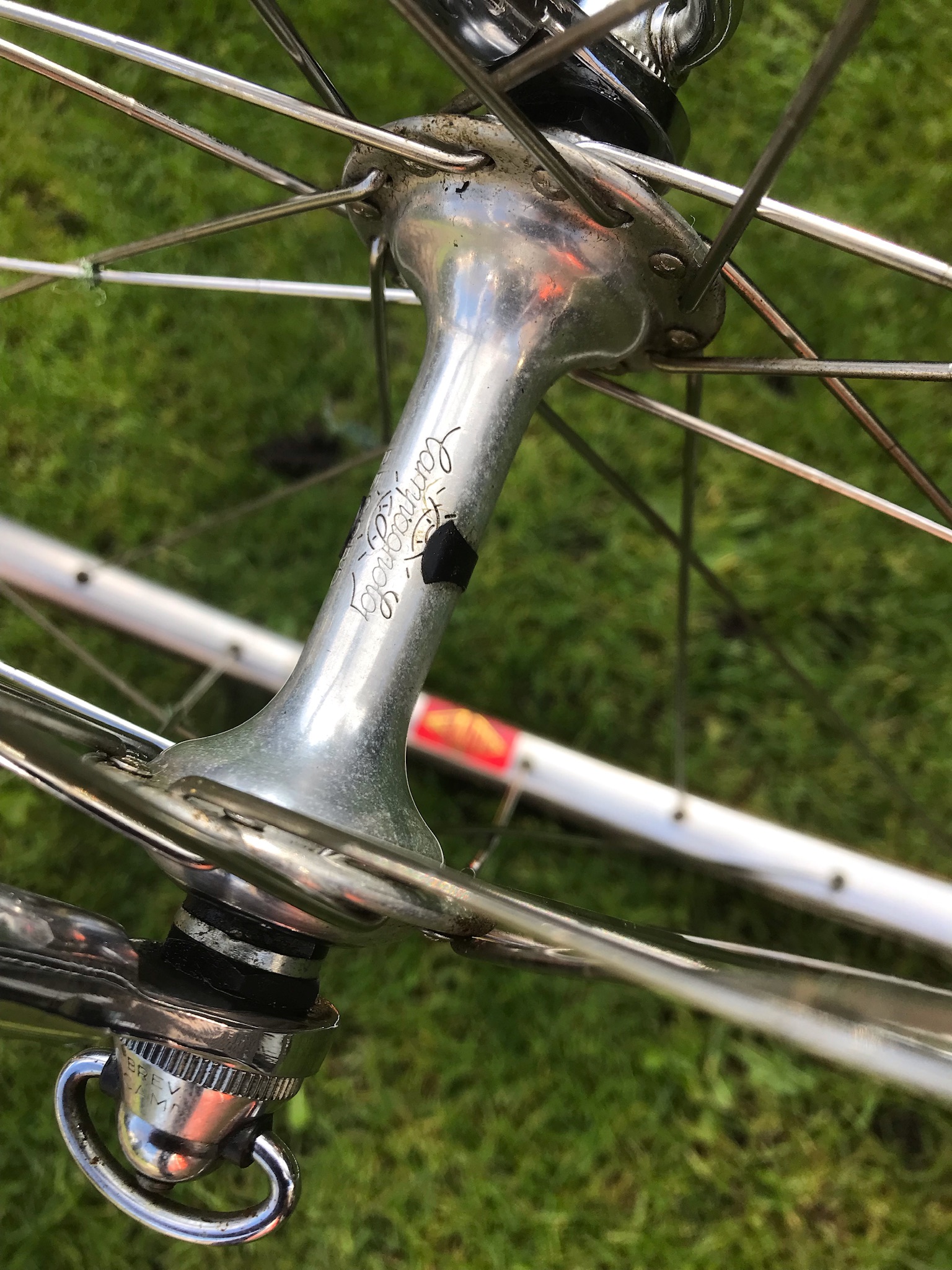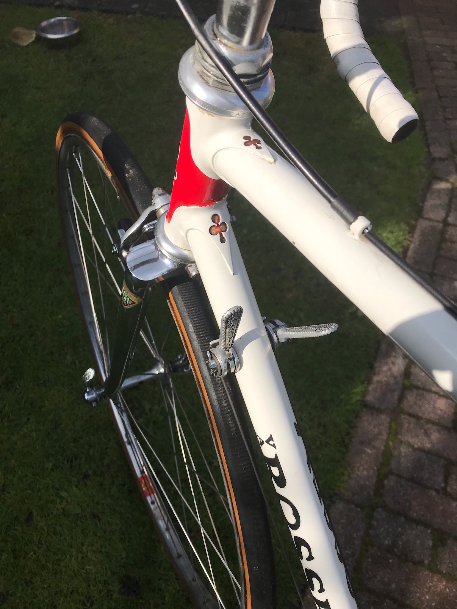 Kan je helaas niet helpen aan Campagnolo remblokjes of houders, maar wat leuk een Van Rossem te zien. Die zie je niet veel. Werelduurrecord 1978 werd op een Van Rossem gereden, door Keetie Hage, dus wel een merk om te kennen, zeg maar.