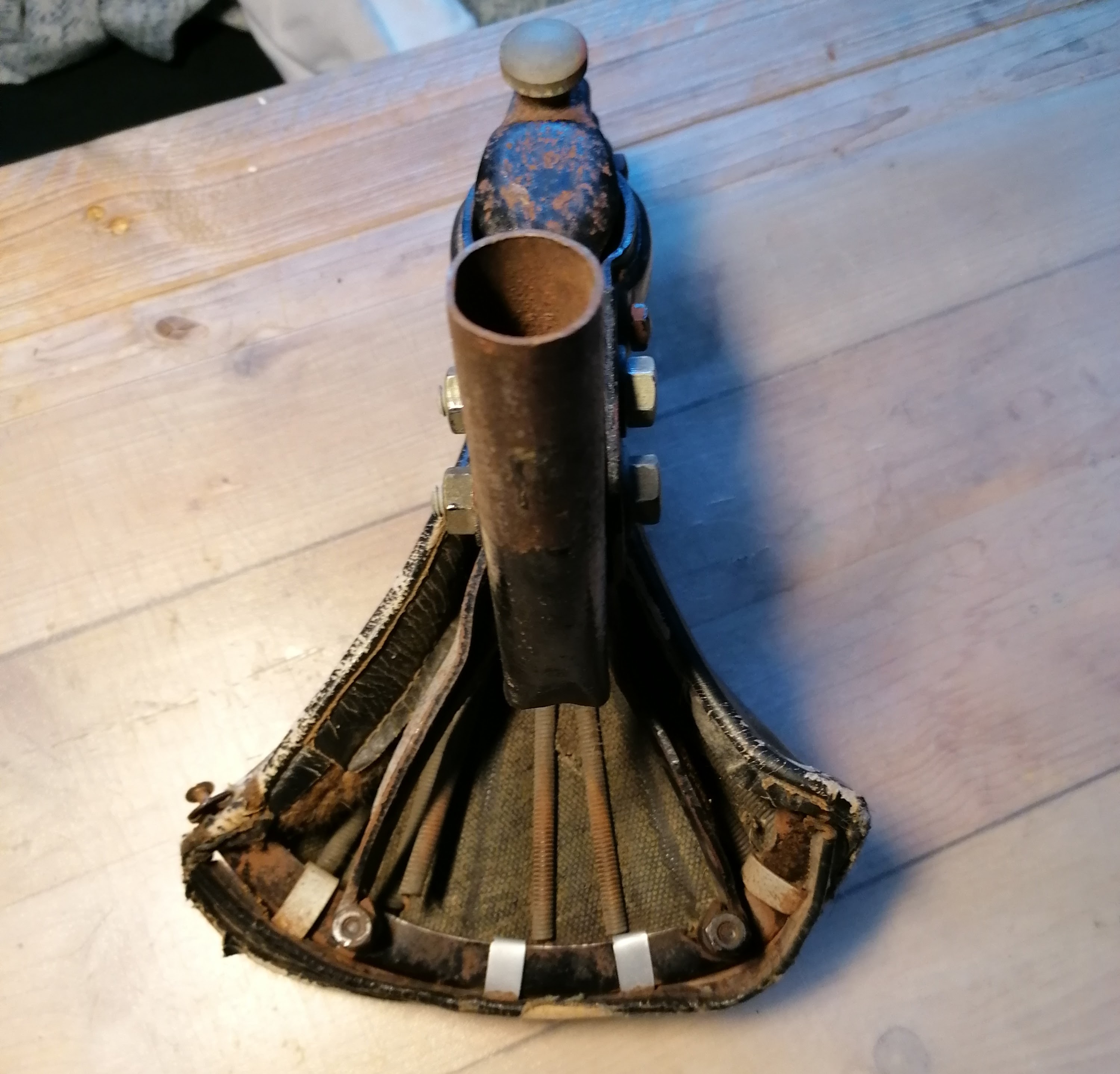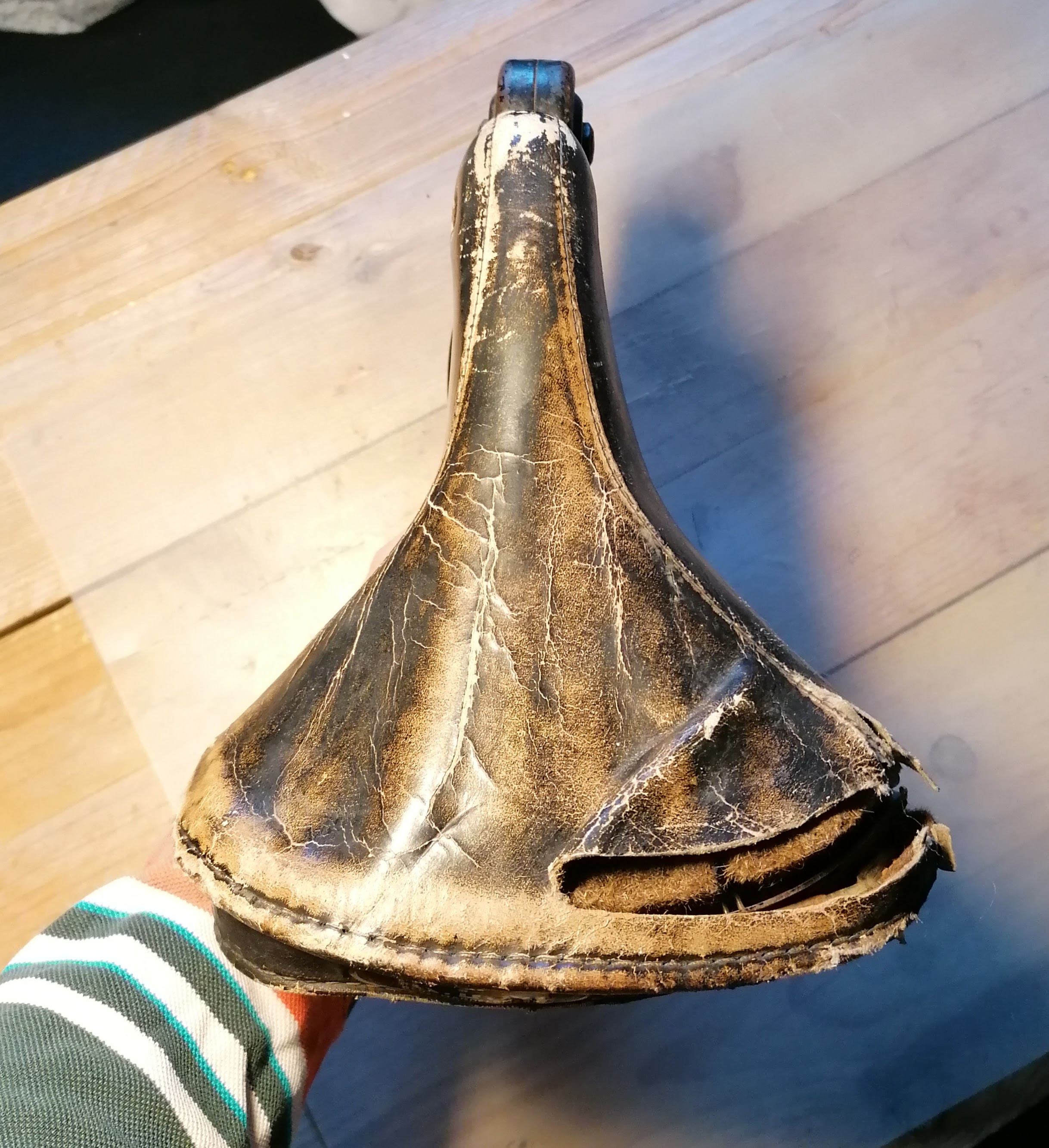 gezien het frame van de fiets waar hij vanaf komt al hoog is voor mij is dit zadel een stap te ver. ik heb er geen nut voor dus bied hem hier aan. het zadeldek heeft een scheur en de stalen rand aan de achterkant is gebroken aan de rechterkant, vandaar de asymetrische vorm. maar de basis is nog goed, de rubberen balg heeft wat kleine droogscheurtjes. ik zou niet weten wat ik er voor moet vragen dus vraag een net bod of een ruil tegen juncker onderdelen. ik zoek oa. een set 28x1 1/2 velgen voor op een 1954 kruisframe.