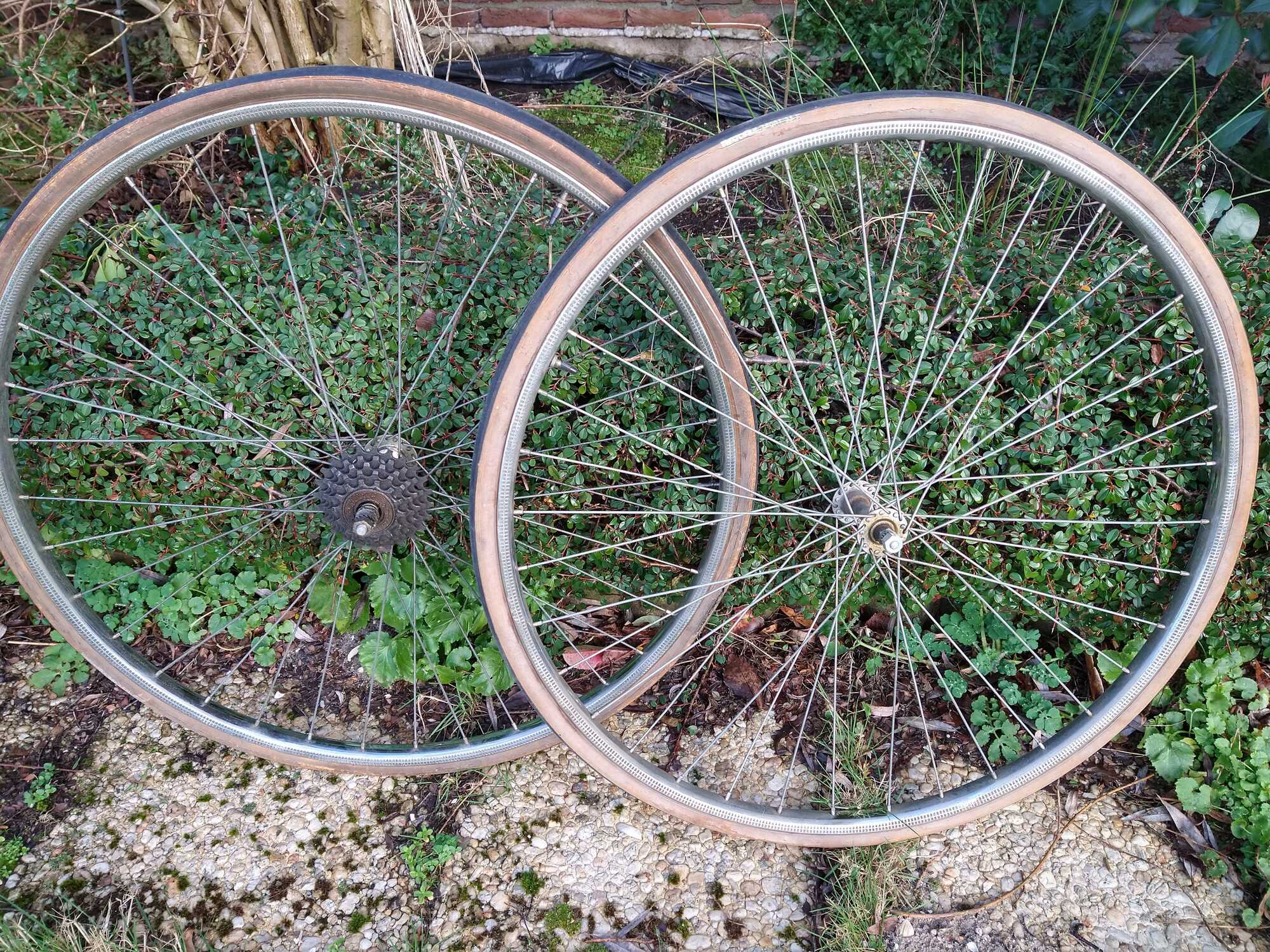 Ik heb verschillende wielen met verchroomde velgen liggen, in 28"en 27". De meeste zijn afkomstig van goedkopere sportfietsen uit de jaren '70. Staat is zeer wisselend; de meeste zijn wel wat "gepit".