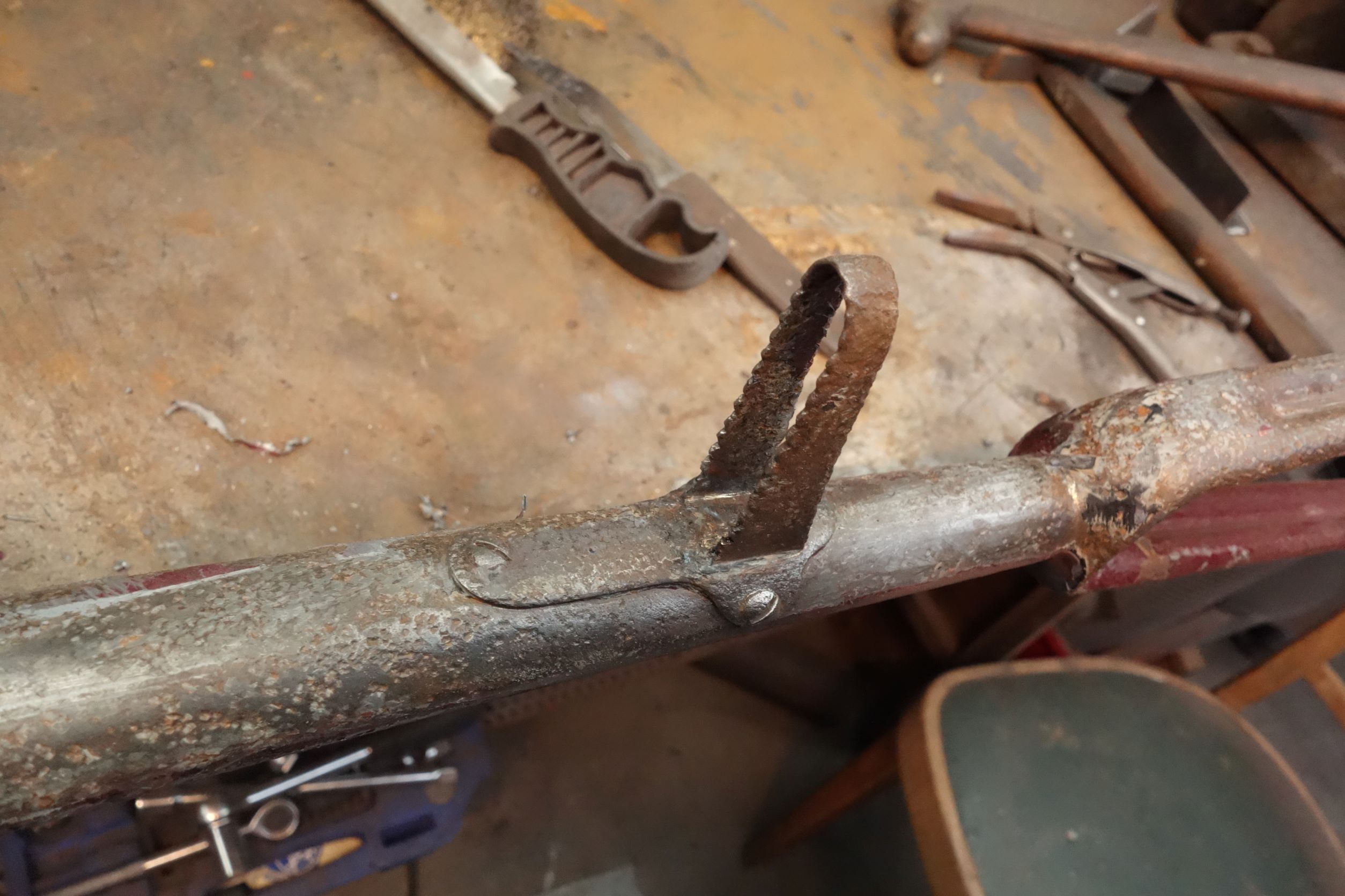 Zo leken de schroeven van de opstap nagenoeg verdwenen evenals het framenummer op de back bone . Maar na schoonmaken blijkt het dan toch weer mee te vallen. De rest is ook zo dik dat doorrotten niet meteen aan de orde is.