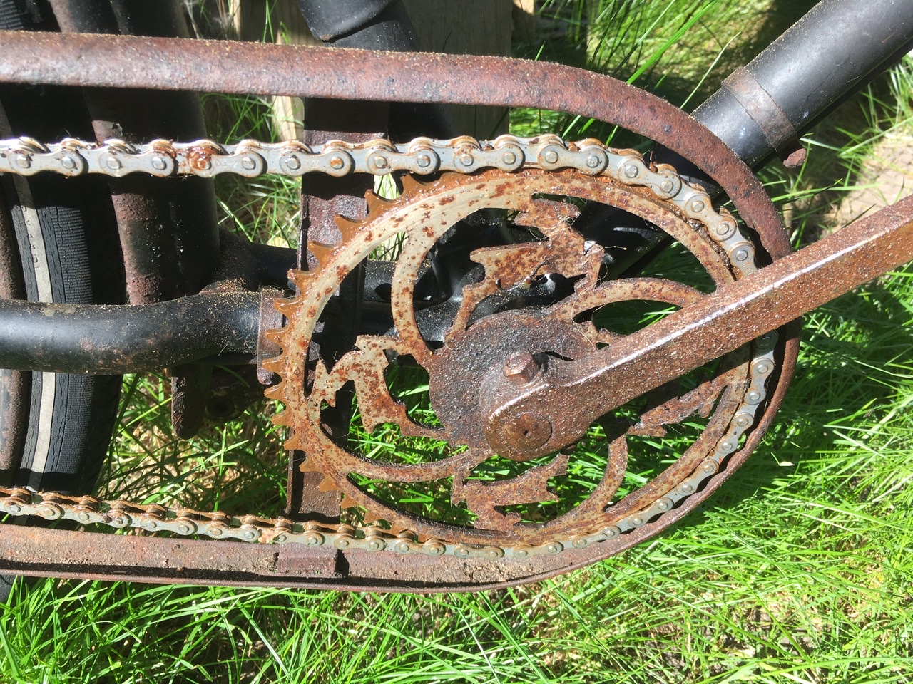 De velgen zijn doorgeroest. Achteras wiebelt. Stuur/handvat is iets krom door het opzij vallen naar links