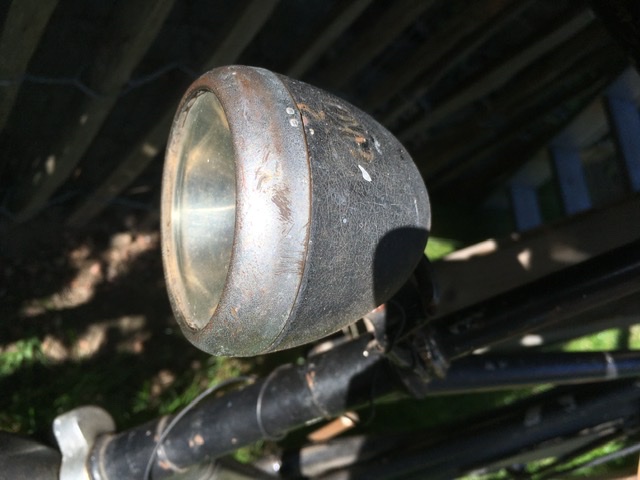 Heel oude Gazelle van voor de varkenssnuit achter lamp.