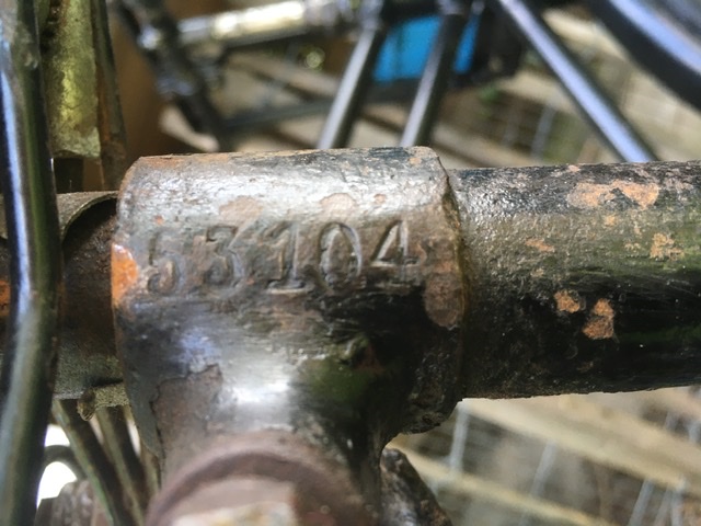 De velg van het achterwiel is in’t ieder geval voor een transportfiets. Die is zeer waarschijnlijk origineel.