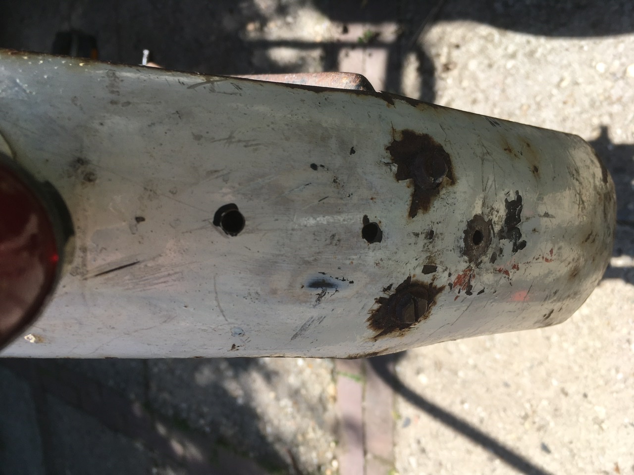Er zitten trouwens wel drie extra gaten van gelijke grootte in het achterspatbord.