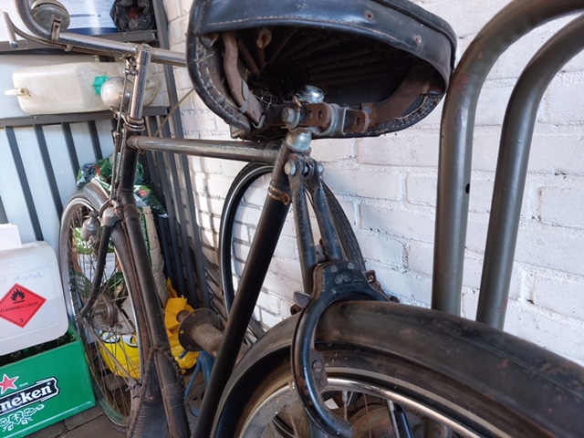 Fiets lijkt origineel en compleet - bagagedrager en standaard komen er ook bij. Kansrijk project, gratis (maar een flesje wijn of zo zou een mooi gebaar zijn) op te halen in Veenendaal voor leden van De Oude Fiets.