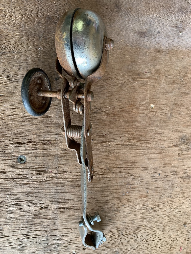 Hallo. Ik heb twee bellen gevonden met een vreemd mechanisme. Volgens mij moet de bel met een wieltje tegen het fietswiel aan gedrukt worden, om zo te gaan rinkelen. Wie weet er meer over deze bel? Zie foto's.