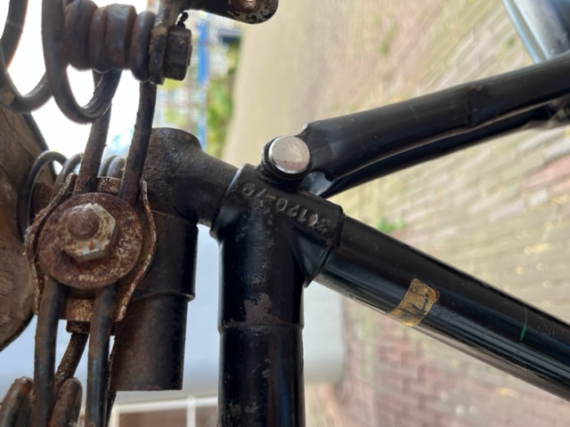 Een beetje achtergrond: Deze BB is uit 1934 en heeft een tijdje in Indonesië "gewoond" getuige de belastingstempels op het balhoofd van in ieder geval 1939, 1940 en 1941. De stempels zijn van gemeente Semarang. De fiets is dus in ieder geval nog tot '41, het jaar van de inval, in Indonesië geweest en daarna ooit weer terug gekomen in Nederland. Wat ik van de vorige eigenaar heb gehoord, is dat ie uit Baarn komt; veel meer wist ie niet daar hij 'm ook weer recent had gekocht "via via".