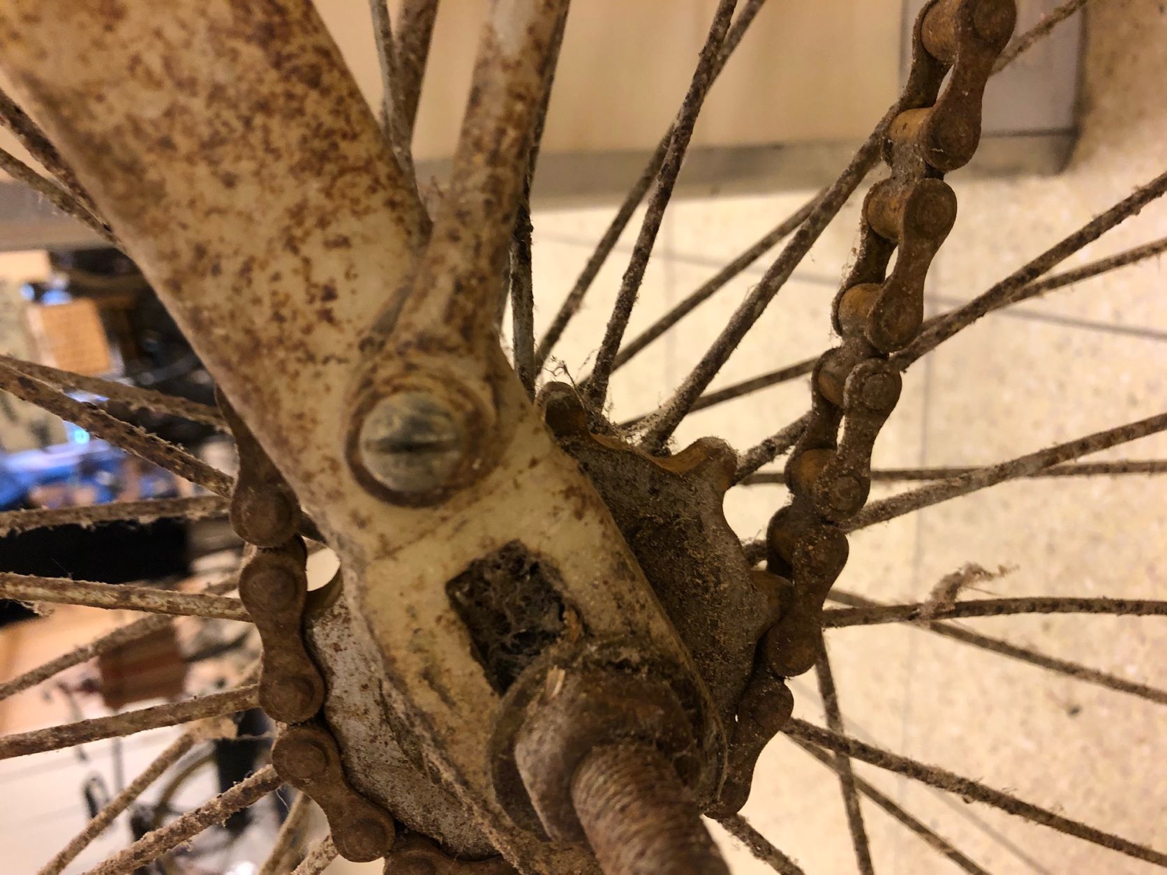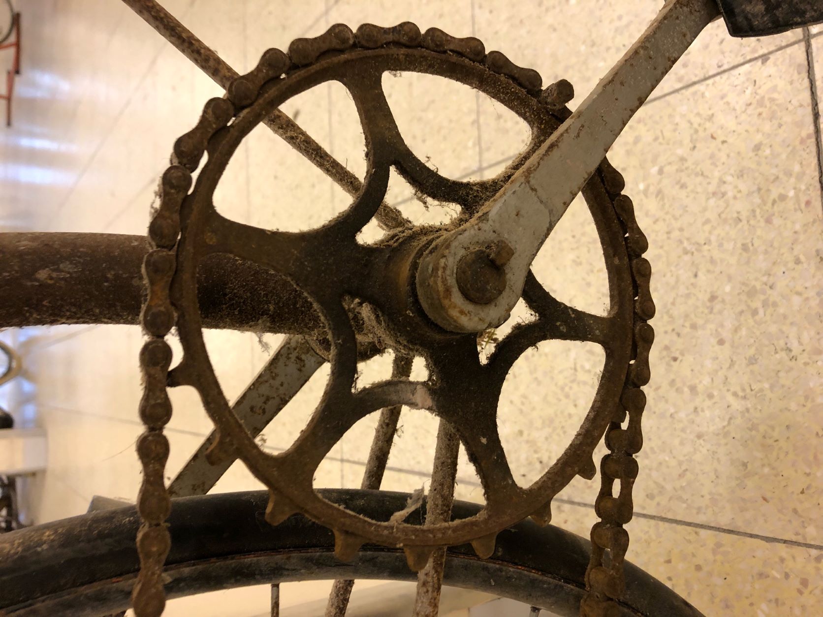 Ik vermoed daarom dat tandwiel en beide cranks ooit zijn vervangen.