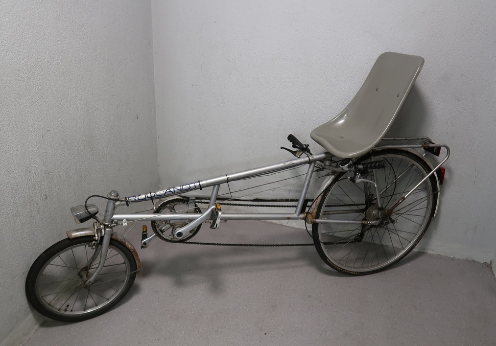 De Roulandt werd ontworpen door Aart Roelandt en is destijds (begin 80-er jaren) min of meer experimenteel geconstrueerd met als gevolg de nodige kinderkwaaltjes. Het vehikel roept daarom, vooral bij doorgewinterde ligfietsers, vaak nogal wat commentaar op. Maar ik ben er blij mee en zie een mooi project voor de wintermaanden. Ik ben van plan de fiets niet geheel te restaureren, in de zin van showroomconditie, maar te conserveren en netjes bedrijfsklaar maken. Tenslotte bestaan er van deze eerste in Nederland seriematig geproduceerde zit/ligfiets op verschillende plaatsen fonkelnieuwe exemplaren (b.v. Museum Boijmans en Velorama) en wil ik de sporen van z’n veertig jarige geschiedenis respecteren. Ter introductie een paar plaatjes.