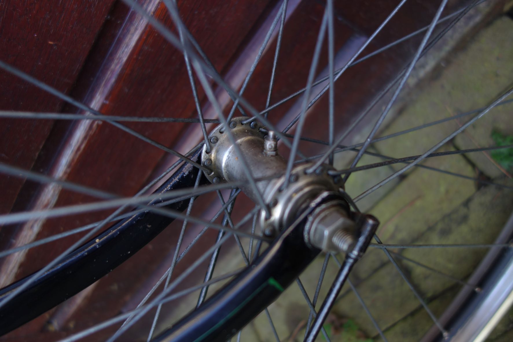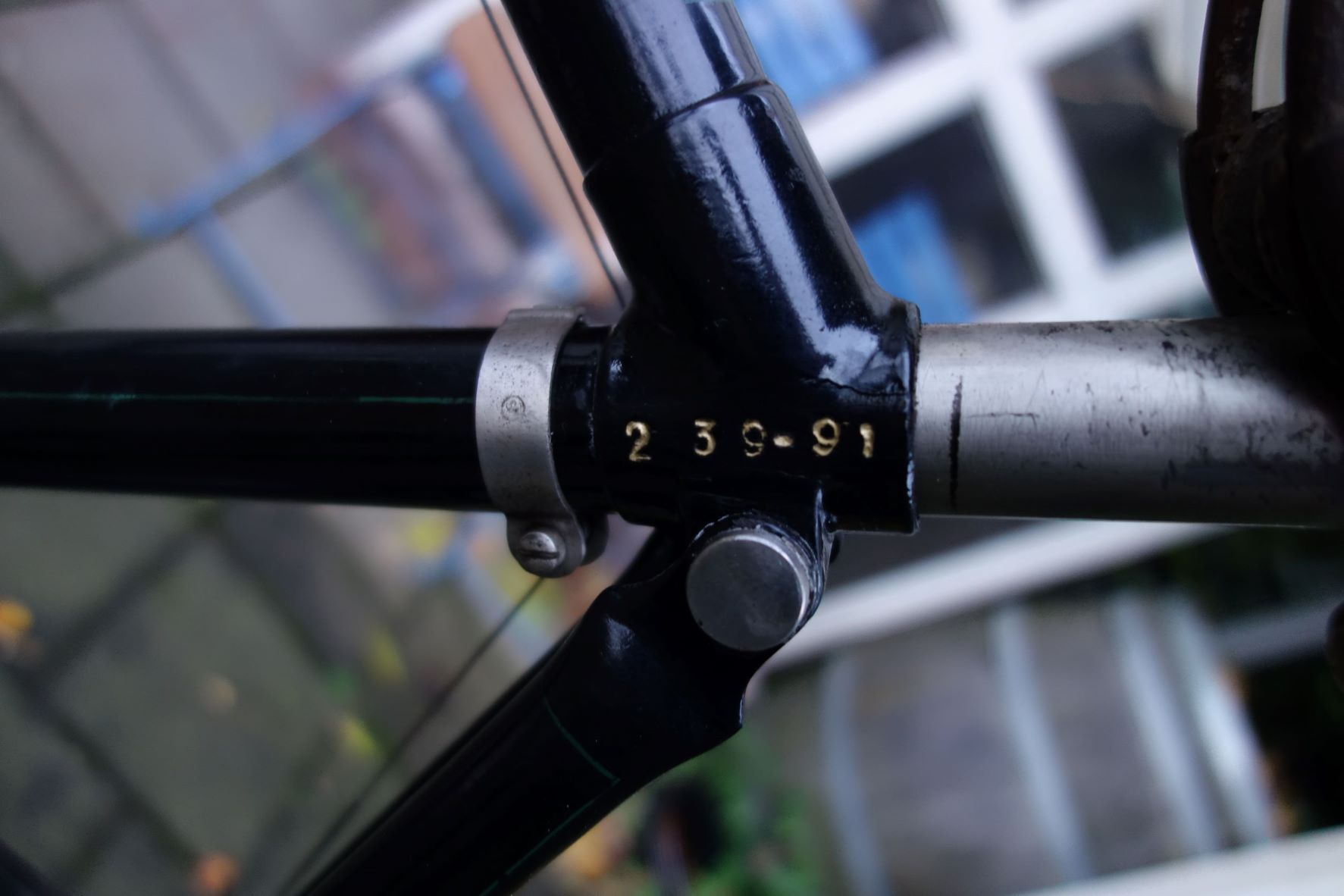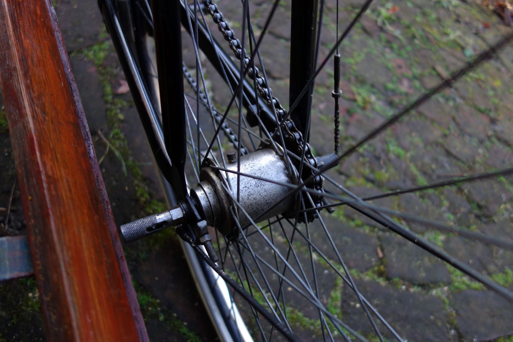 De fiets stamt uit 1923 en is voorzien van een S.A. K naaf.