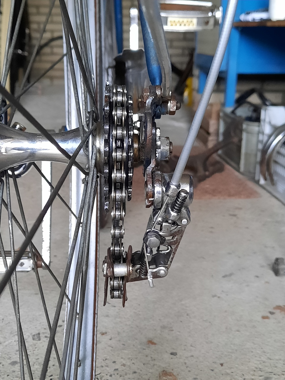 Wat kan meespelen is dat je een nieuwe (moderne) KMC ketting gebruikt heb op de oude pion. Vaak is het kleinste tandwiel het gevoeligst voor problemen als je dan een nieuwe ketting gebruikt. Daarmee bedoel ik overslaan of knarsen/brommen.