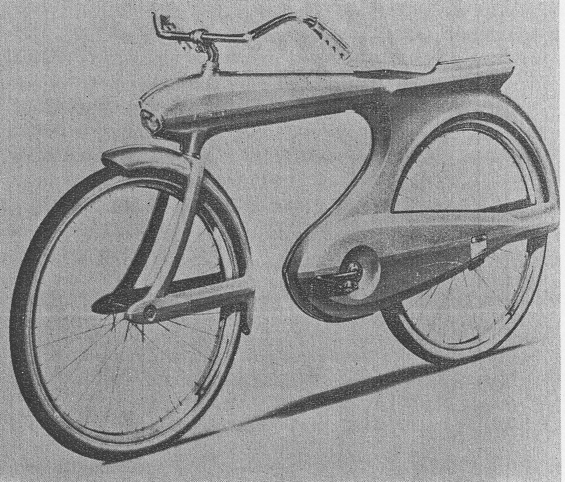 Volgens mij is de rode fiets een Bowden 300, een Amerikaans ontwerp van ca. 1964 dat ook kort in NL te koop was.