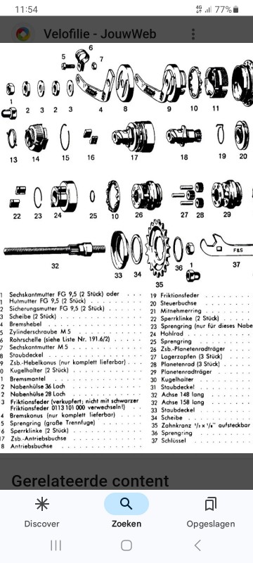Hallo allemaal, ik ben opzoek naar een klein onderdeel voor een torpedo duomatic naaf van sachs. Het gaat om de pivot pen die een van de drie planeet wieltjes op zn plek moet houden. Het lijkt er op dat de vorige fietsmaker die een poging heeft gedaan de naaf te reviseren dit onderdeel niet terug heeft gezet. Heb mn werk plek afgezocht maar zie het echt niet. De naaf liep niet meer, diverse kogeltjes gebarsten maar verder ziet het er mi nog oke uit dus ik wil een poging doen. Heeft iemand misschien een kapotte liggen om dit onderdeeltje uit te halen? Hartelijke groet, Stefan.