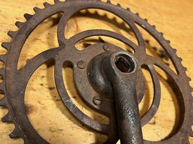 Het tandwiel, de trapas en de cups zien er nog heel goed uit. Een beetje verkleuring maar nog lang niet versleten.