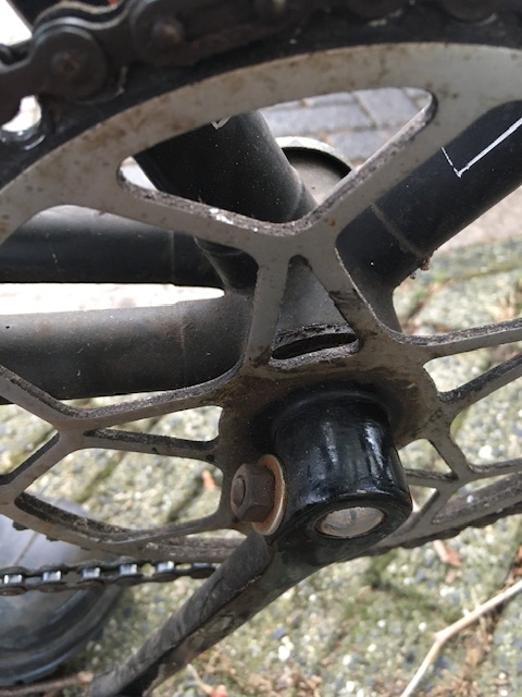 Jammer dat er geen kettingkast op zit. Ik begreep van de verkoper dat een kettingkast voor 48 tands-tandwiel tegenwoordig niet meer te krijgen is.