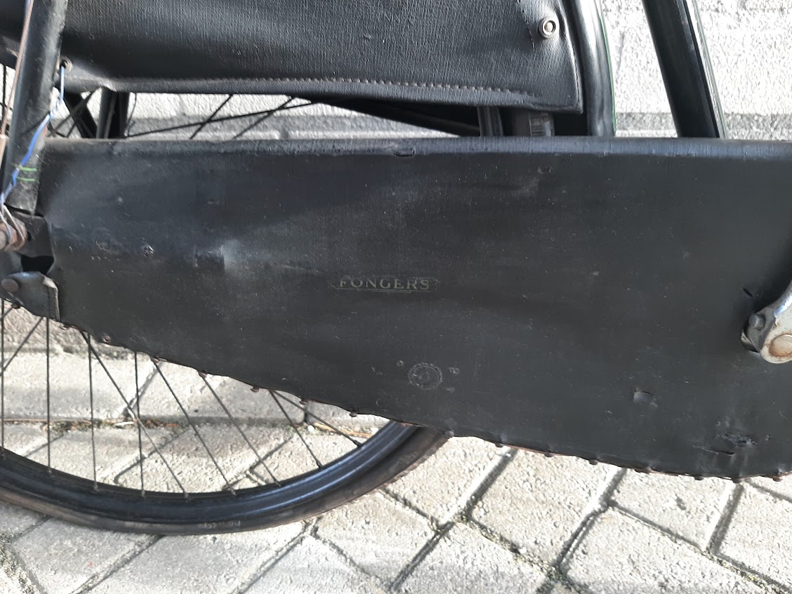 Die theorie van Maarten zou wel eens kunnen kloppen. Niet alleen zijn de spatborden 'vreemd', maar ook de biezen van frame en spatborden zijn niet volgens de Fongers-methode (en met die precisie) gedaan. Blijft de vraag of je dat ca. 85 jaar na dato moet willen veranderen. Het klopt dat deze 'make over' een groot deel van de geschiedenis van dit rijwiel heeft bepaald. Ik ga de fiets eerst demonteren en dan nadere keuzen maken.