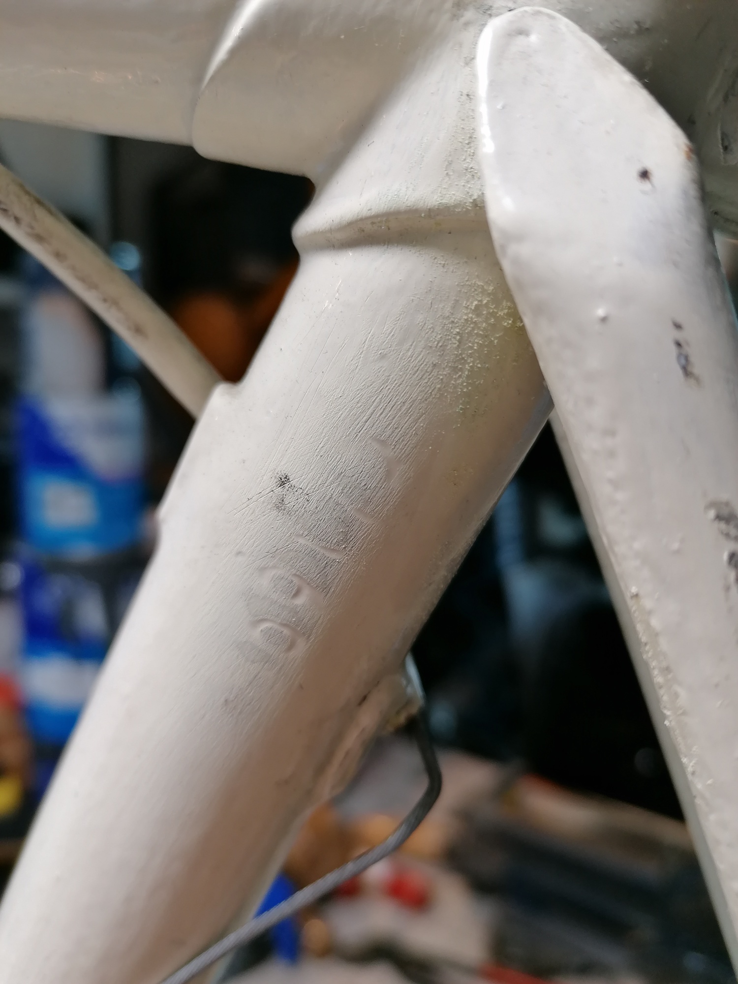 - lijkt een nummer te zijn ingeslagen bovenaan de zadelbuis