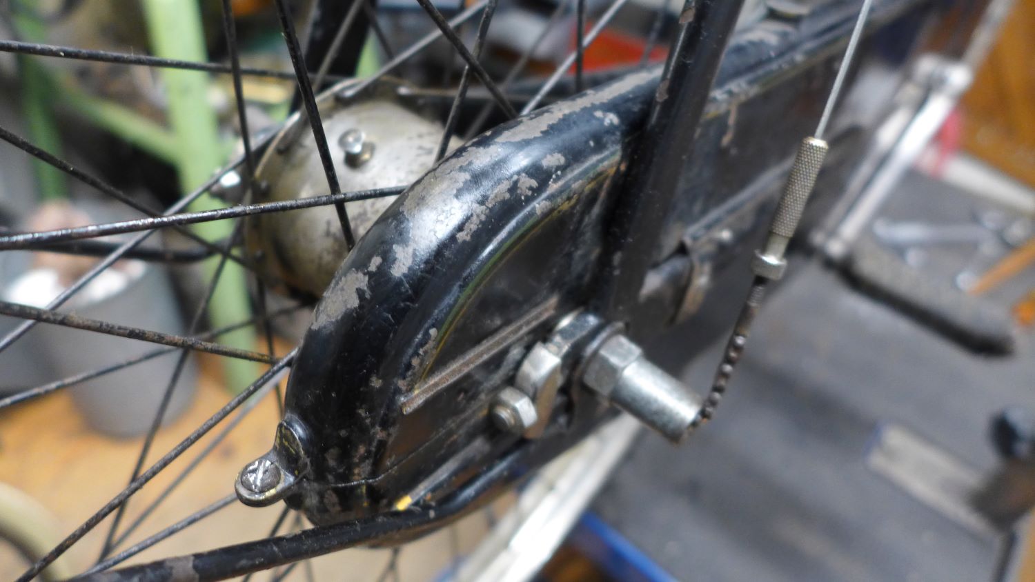 In deze Humber zit een Sturmey Archer A naaf die nog goed schakelde maar waarvan het achtertandwiel verkeerdom zat voor een juiste kettinglijn en
