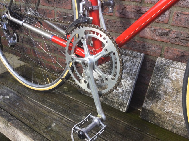 Nog een katoenen stuurlint, en waarschijnlijk de achterderailleur vervangen voor een Campagnolo Nuovo record uit de jaren 70.