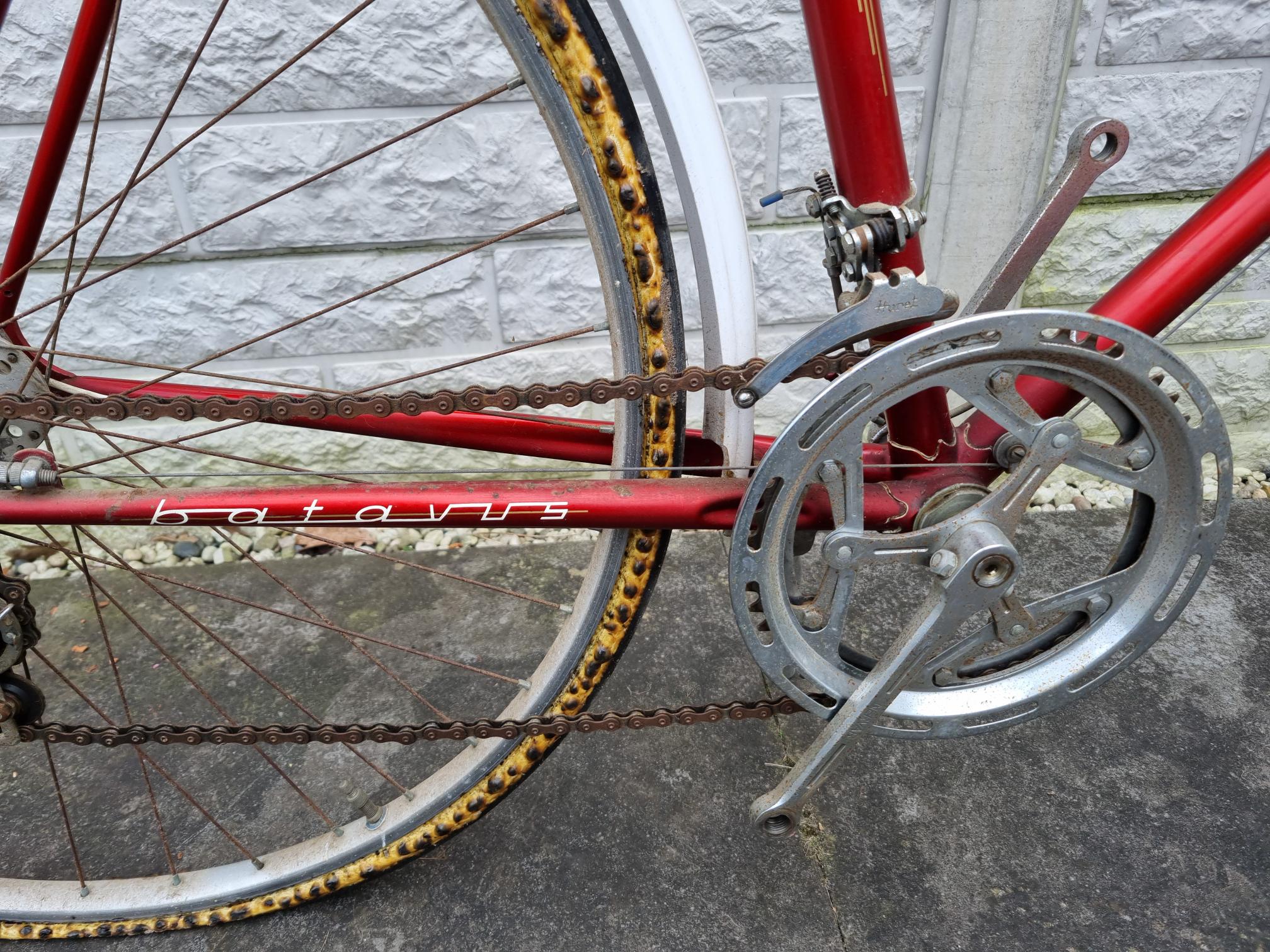 Ik heb de fiets afgelopen vrijdag 8 maart opgehaald. Het is een erg leuke fiets en ik ga deze zeker opknappen. De handvatten aan het stuur zijn ook wel apart! Leuk al die originele details aan de fiets zoals het stuur, de koplamp en de standaard met het Batavus merk. Ik heb nog wel een vraagje: de banden zijn zoals te zien niet meer helemaal in goede staat :), de velgen lijken mij 26 inch, welk type band zou goed voor deze fiets geschikt zijn, ik kan geen bandenmaat meer aflezen op deze banden.