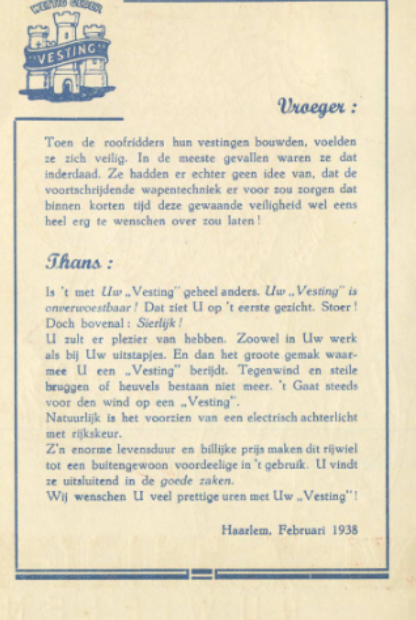 Vesting rijwielen had ook een mooi reclamebord