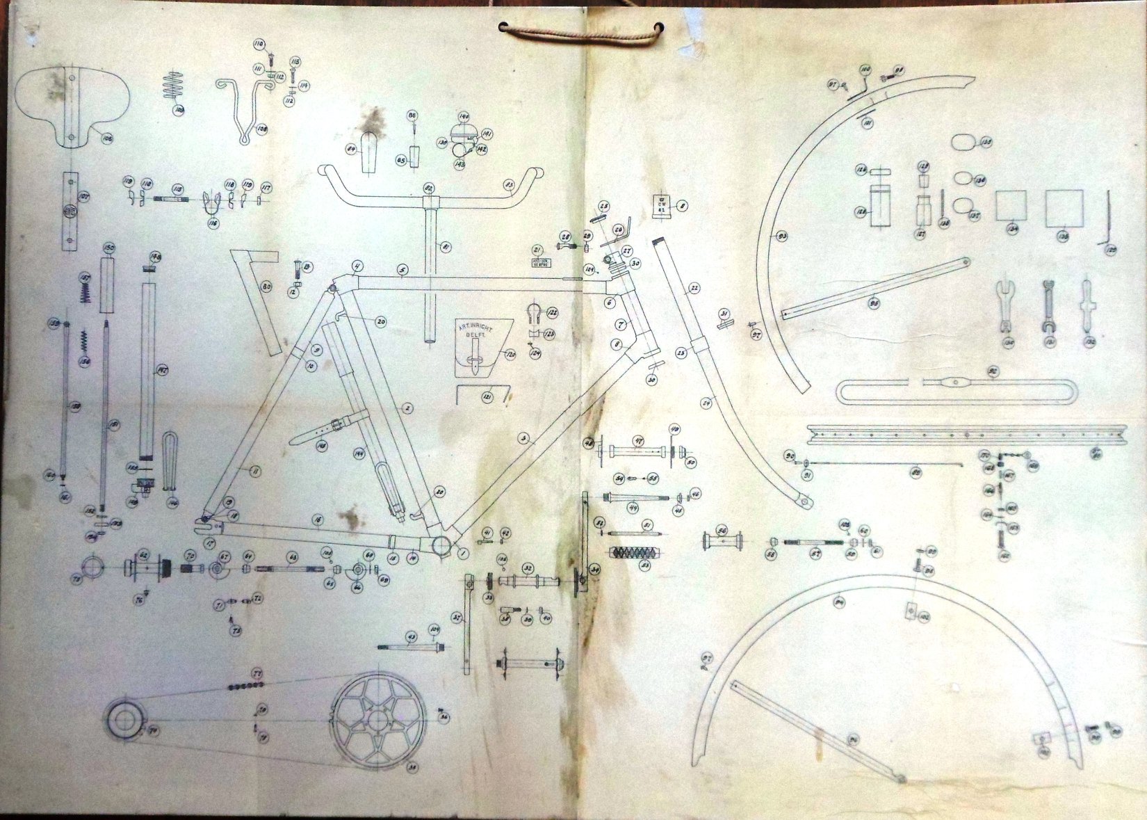 Hierin wordt gesproken over Fongers en BSA en Nederlandsche Kroon (bij 9 R.I.) rijwielen. Ook zit er een plaat in waarop duidelijk een BSA frame is te herkennen. Met spreekt behalve over hygienische zadels ook over Brooks zadels. De bel op de tekening is een lucas king of the road. Op de tekening is het hygienische zadel uitgerust met een messing plaatje met daarop gegraveerd een cirkel met daarin een kroontje en de letters C W. (Centrale Werkplaats). Ik heb zo'n zadel in mijn collectie."