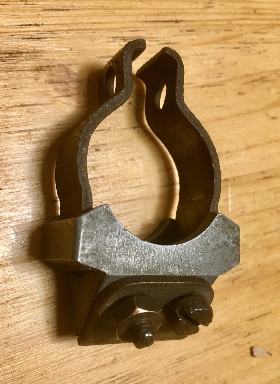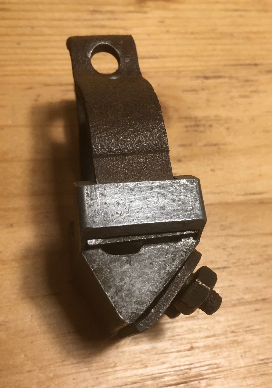 Op de schuine framebuis zit een vreemd onderdeel dat ik nog nooit gezien heb. Een aluminium driekantig blokje met daarop een plaatje geschroefd waar iets tussen geklemd kan worden. Het ziet er niet uit als zelfgemaakt knutselwerk. Waar zou dit voor bedoeld zijn geweest? het lijkt met toch niet iets te maken te hebben met de Imco Trommelrem.