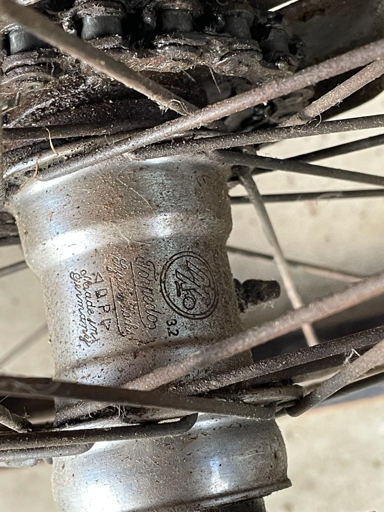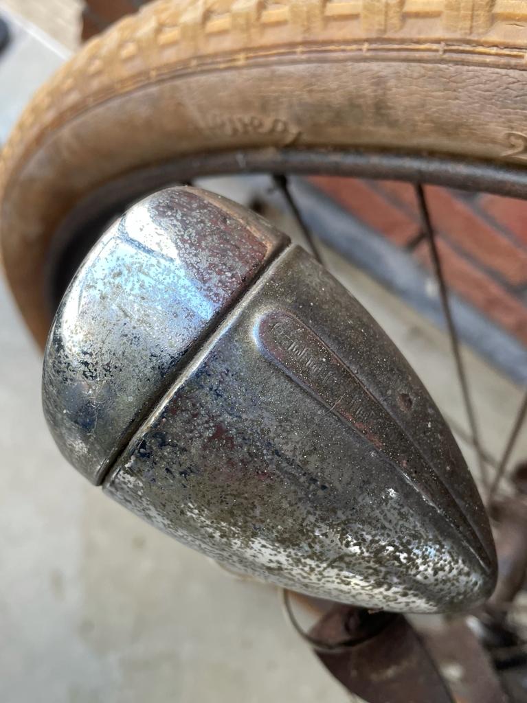 Wat ik dan wel weer grappig vind is dat er een koplamp gemonteerd zit met zon “rug” er bovenop waar een merk in staat net als bij mijn Veeno fiets.