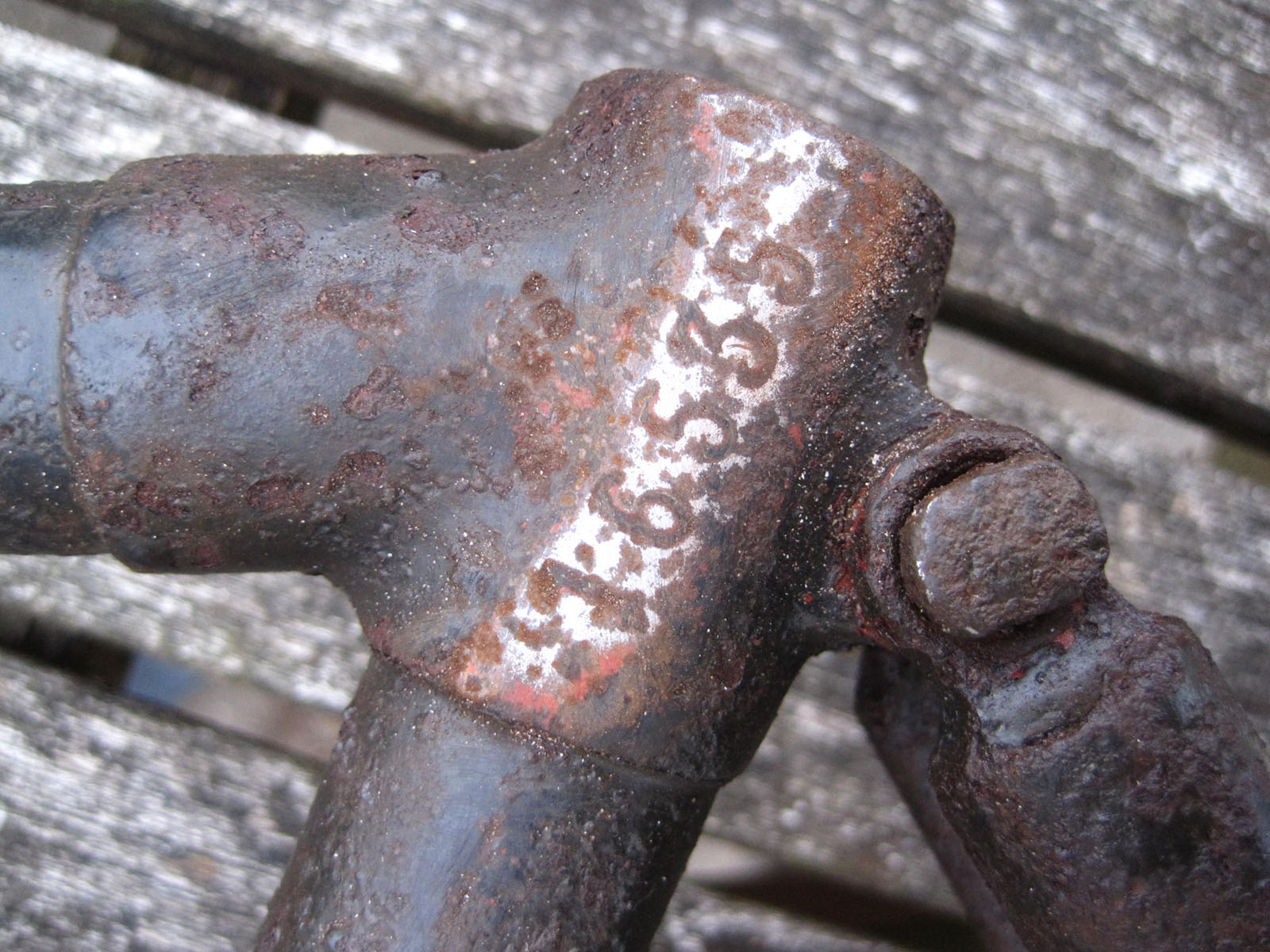 Misschien zegt het nummer op het balhoofd iets over het type fiets? Mijn frame lijkt me een dienstfiets, hoewel de verdikking onderaan de staande vork op zwaar werk duidt. En die verdikking ontbreekt bij jou, waar je hem eerder zou verwachten.