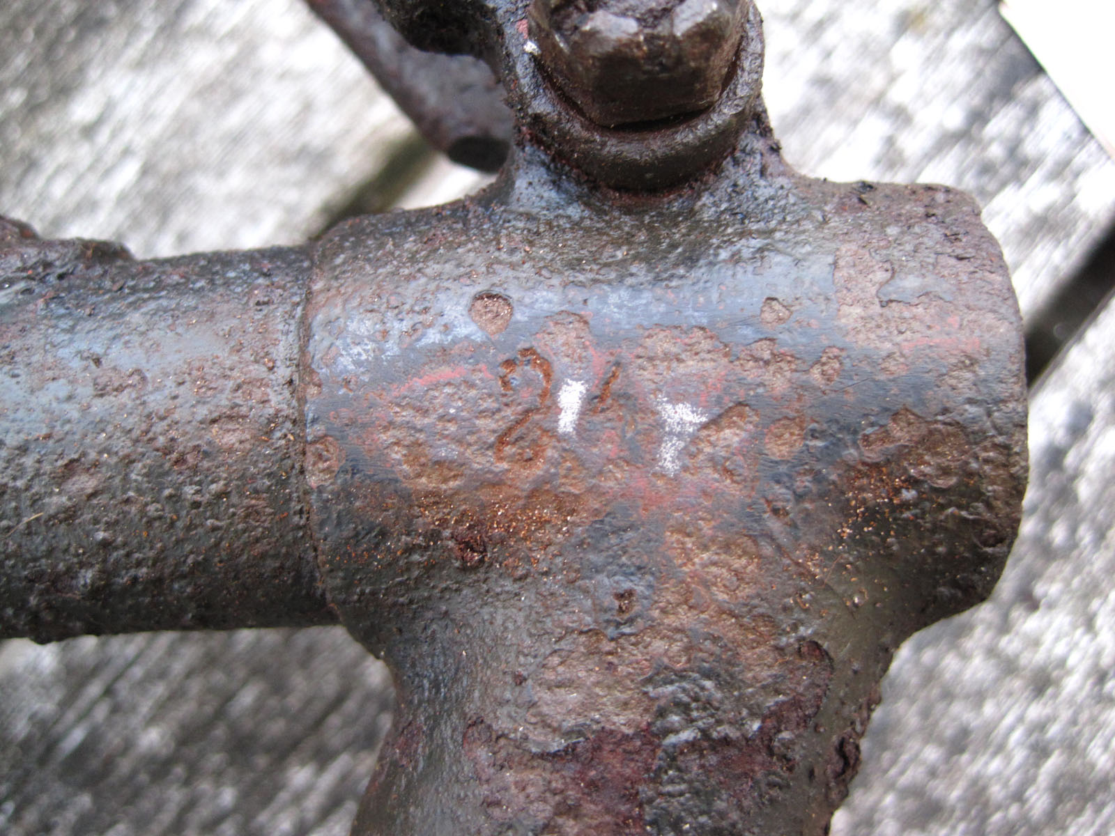 Onlangs heb ik op marktplaats een 'transportfiets' frame gekocht met een vergelijkbaar merkteken op het balhoofd, W F 122 onder een kroon, zie foto's. Zowel de achterpadden als de uiteinden van de staande achtervork zijn gesoldeerd, iets wat je zelden ziet bij transportfietsen. Mijn zoektocht naar meer info leidde mij naar deze fiets. Mijn frame heeft nog een aantal kenmerken die het frame van Hans ook heeft: Het framenummer (16353) zit op dezelfde plek en op de andere kant van de zadel-lug staat ook 24. Van de pomphouders resteren alleen nog een soort tepels omdat ze zijn afgezaagd, maar ze zijn ontegenzeggelijk hetzelfde. Het frame is aan de buitenzijde zorgvuldig gestript en zwart gelakt, maar bij nadere inspectie bleek op de voorvorkbuis nog een restant van de originele legergroene lak bewaard te zijn gebleven.