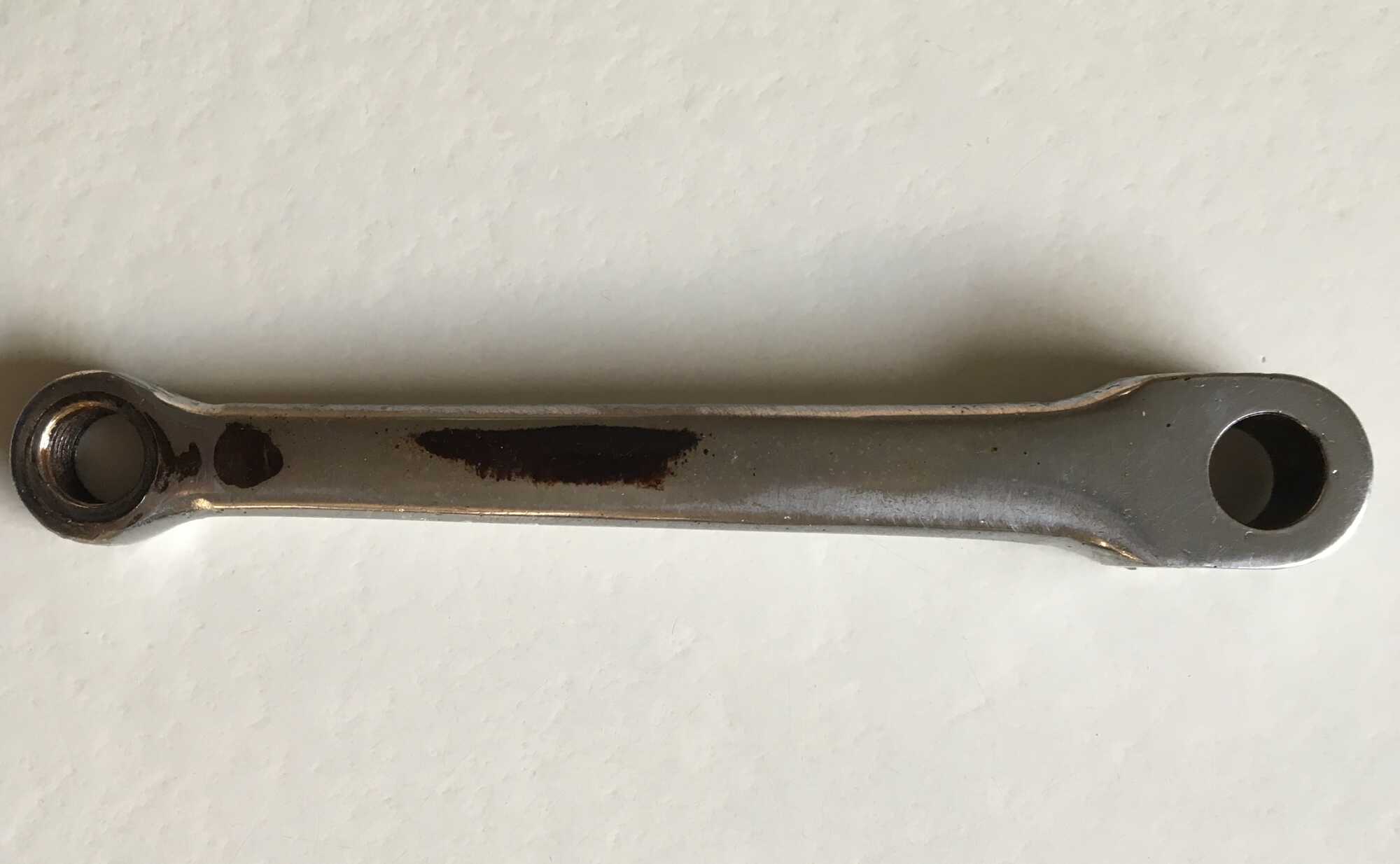 Nog even het resultaat van de toepassing van citroenzuur op de crank met de hardnekkige roestplek waar het allemaal mee begon.