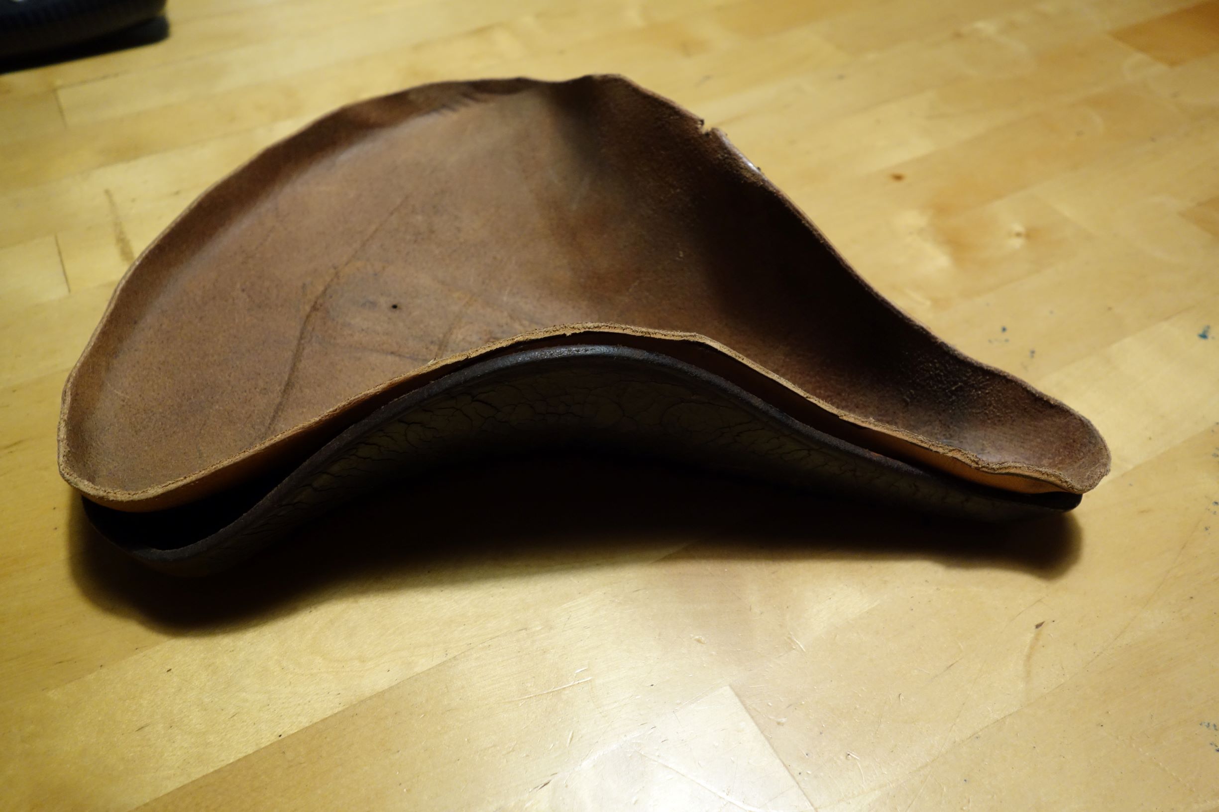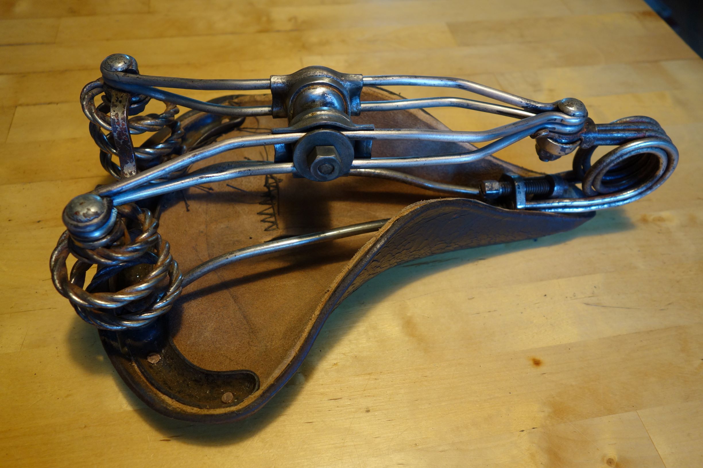 Een vroeg Brooks zadel met nog wat meer schade dan het zadel van m`n Fongers HZ.