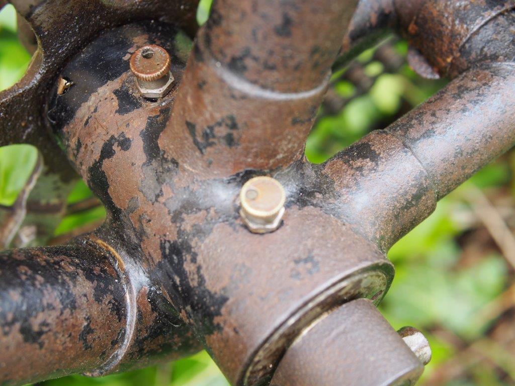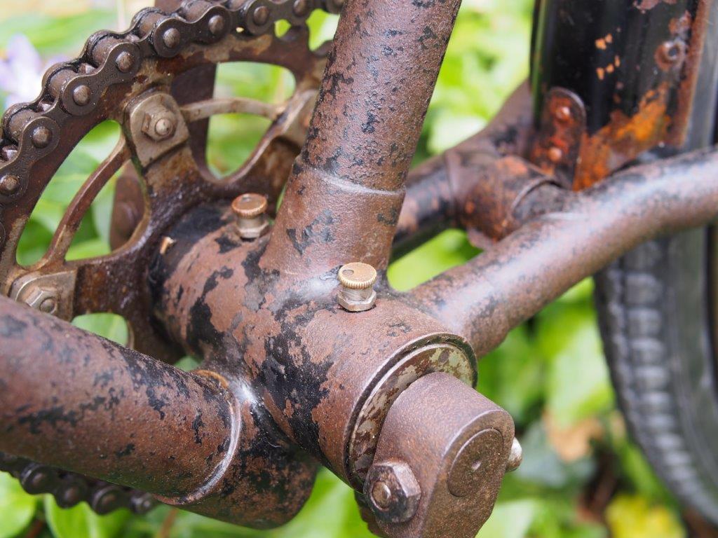 Het bleek een roestige, maar zeer complete fiets. Ik vermoed nauwelijks gebruikt, want er was nauwelijks slijtage zichtbaar of voelbaar in de lagers. Ik heb de fiets gereinigd en daarna met Owatrol bestreken. Die Owatrol heb ik direct na het aanbrengen zoveel mogelijk weggepoets, zodat je wel de donkere kleur houdt, maar niet dat vette glanzende.