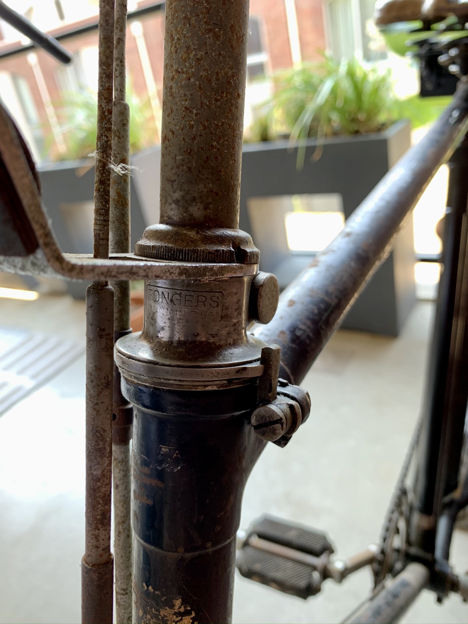 Na 30 jaar gratis revisie komt mij niet bekend voor. Dat zou betekenen dat er helemaal geen originele fietsen van voor 1940 zouden zijn (als elke koper van die service gebruik zou hebben gemaakt). Jaren 30 fietsen zijn zelden gereviseerd, je ziet het vooral bij de fietsen van voor 1930 (maar lang niet allemaal). Ook de aard van de revisie verschilde nogal: soms alleen opnieuw moffelen, soms ook in combinatie met verchromen van de nikkelen delen, soms nieuwe spatborden en remmen, in een enkel geval ook ombouw van het frame (zie jouw kruisfiets). Overigens bleef Fongers/PFG tot ca. 168 op kleine schaal reviseren c.q. moderniseren (een service die met stijgen van de uurlonen steeds kostbaarder werd).