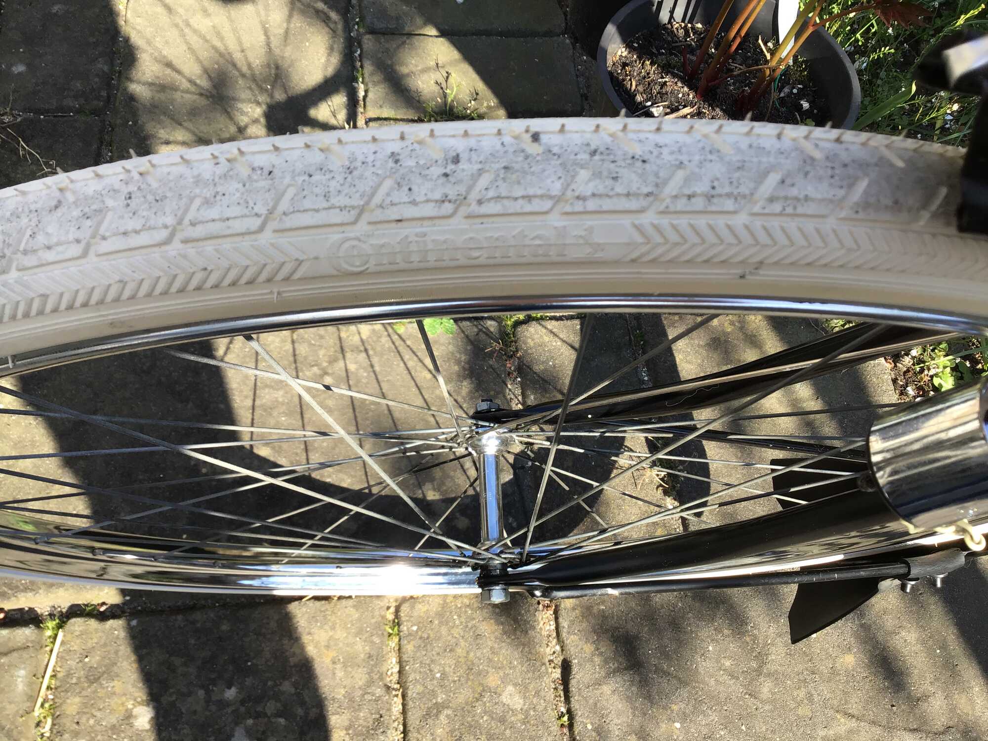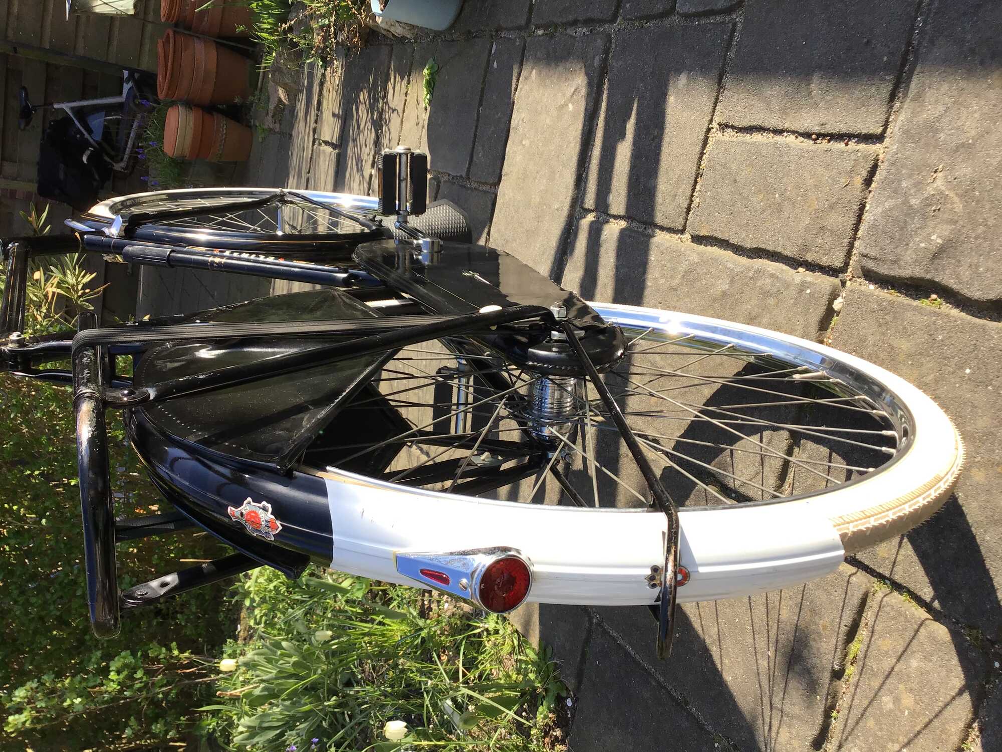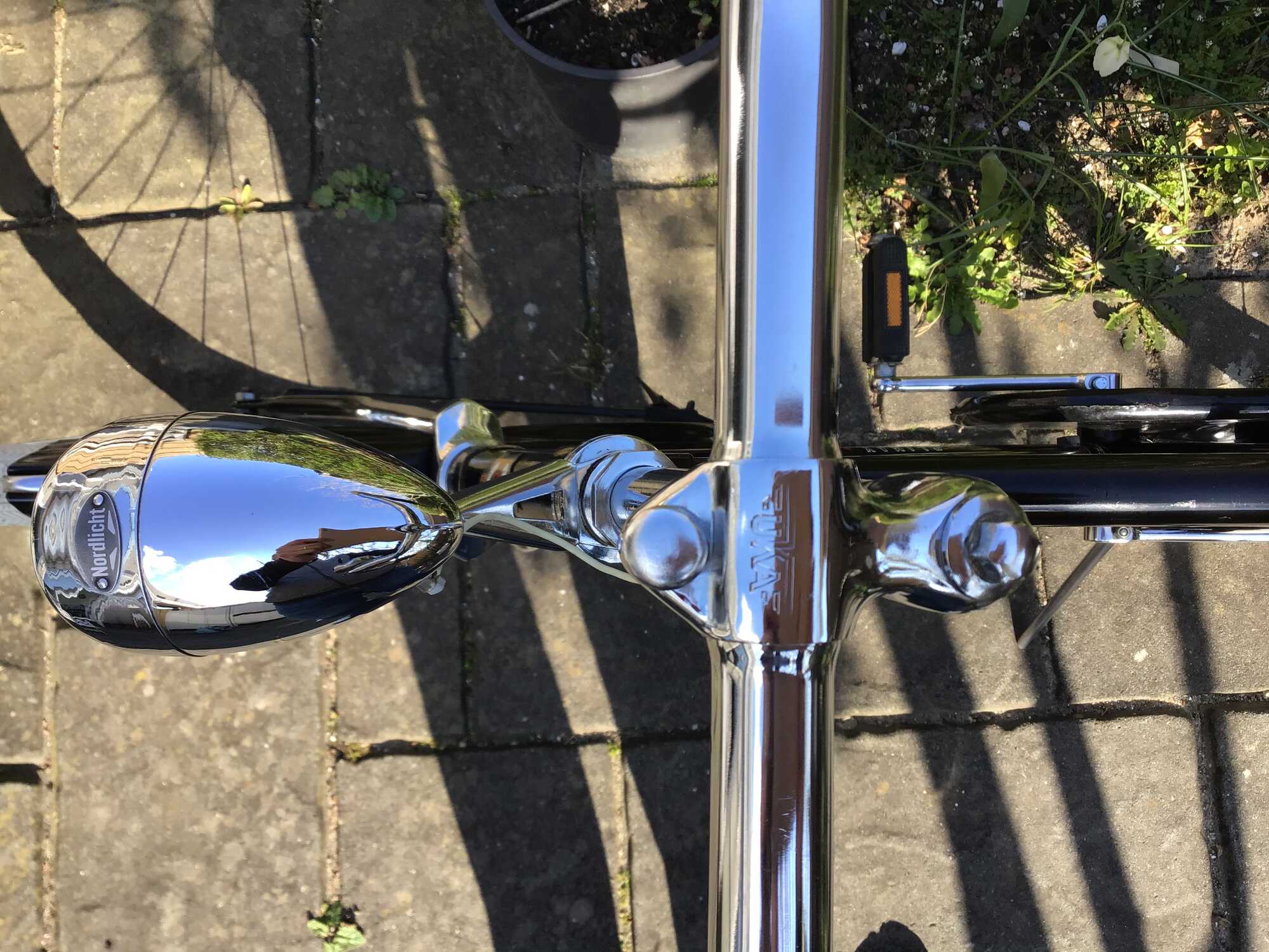 Ik heb de fiets schoongemaakt in de olie gezet en voorzien van nieuwe bandjes. Verder de jasbeschermer en kettingkast gerepareerd.