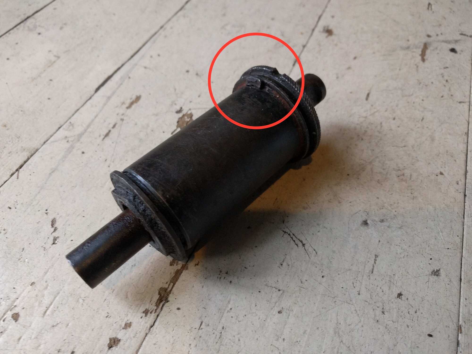 Nokje voor uitsparing in het bracketpot (zodat bus niet gaat draaien als je rechte cup erin draait) rood omcirkeld.