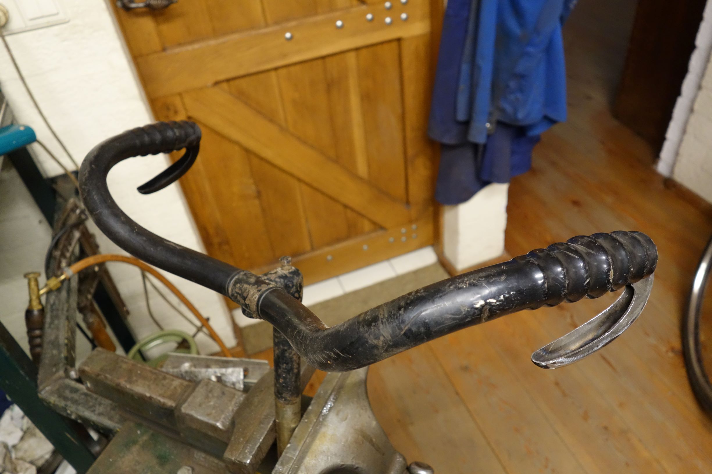 Bijgaand nog een detailfoto die ik van het (originele) schilderij maakte. Het stuur op deze (1907-1906) fiets is overigens niet opgebogen.