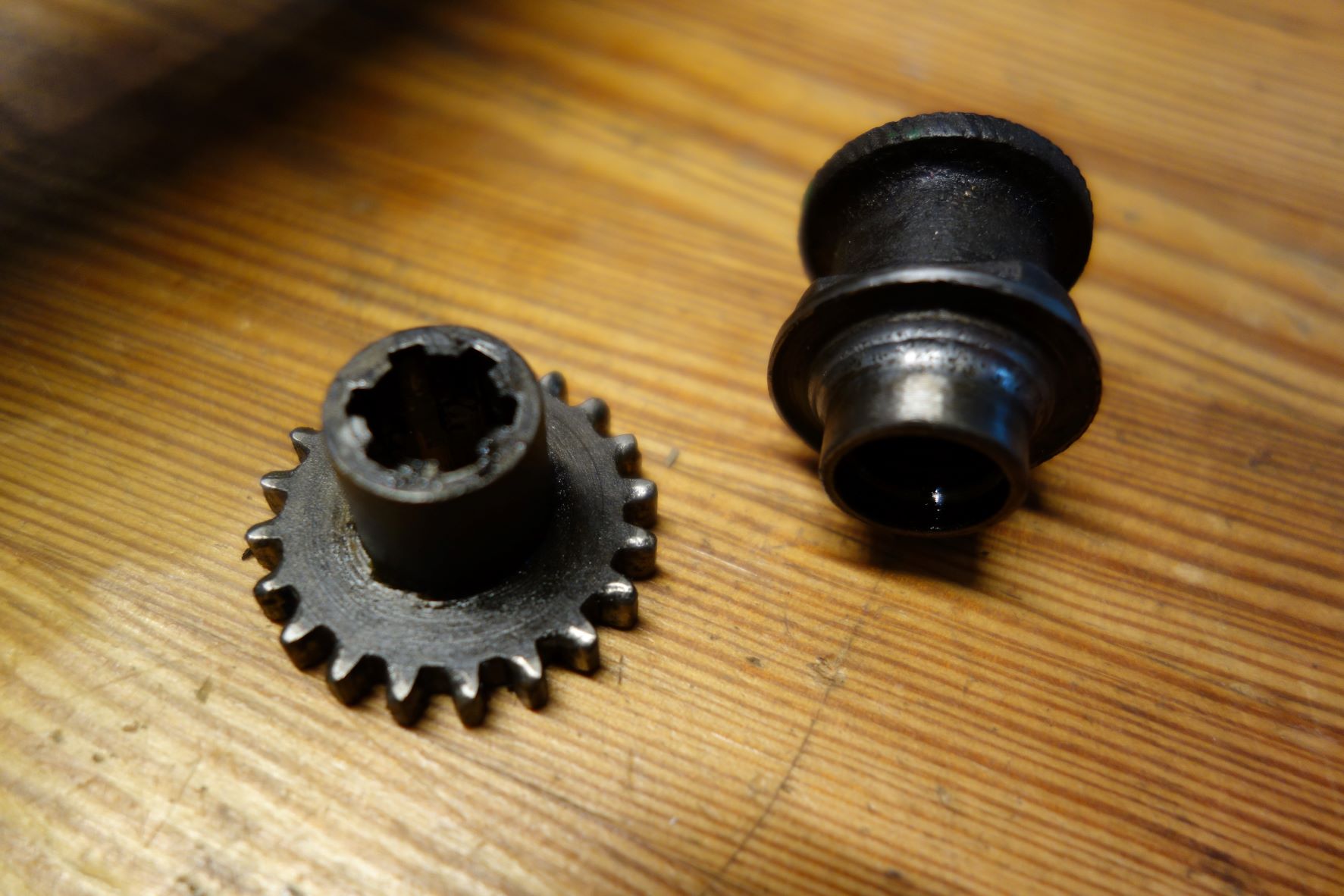 Daarnaast heb ik de scherpe slijtage haken van het kleine kettingtandwiel afgeslepen zodat de ketting weer netjes zal lopen.