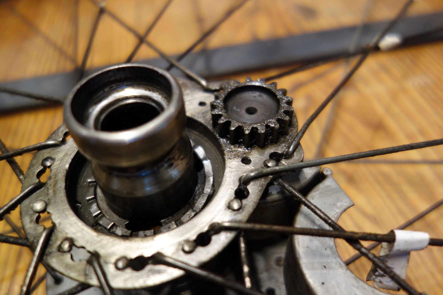 Noodzakelijk omdat vervanging bijna onmogelijk is. Het tandwieltje zit met linkse draad op de naaf en draait zich bij fietsen vast tegen de grote ring waar ik het gereedschap voor heb gebouwd. Zo'n tandwiel ga ik niet vinden. Daar moet je echt een Dursley Pedersen sloperij voor hebben.