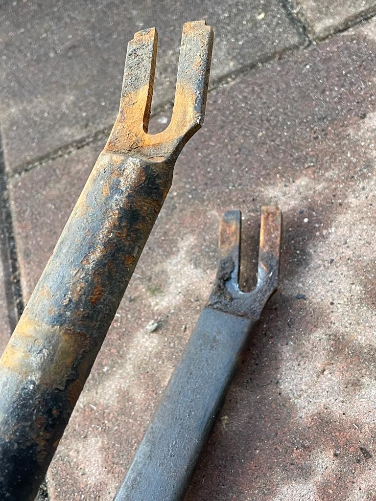 - De staande achtervork heeft ronde buizen terwijl de liggende achterbrug een D vorm heeft. Geen idee of dit iets zegt maar het viel me in ieder geval op