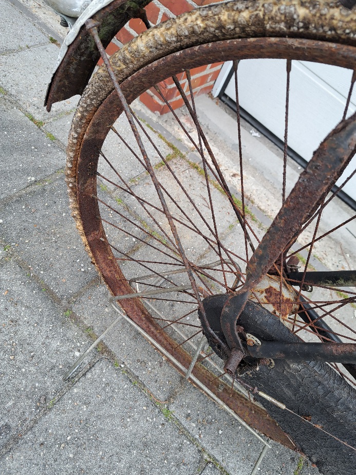 Jammer van de regen die de fiets heeft moeten weerstaan maar zeker nog te redden.