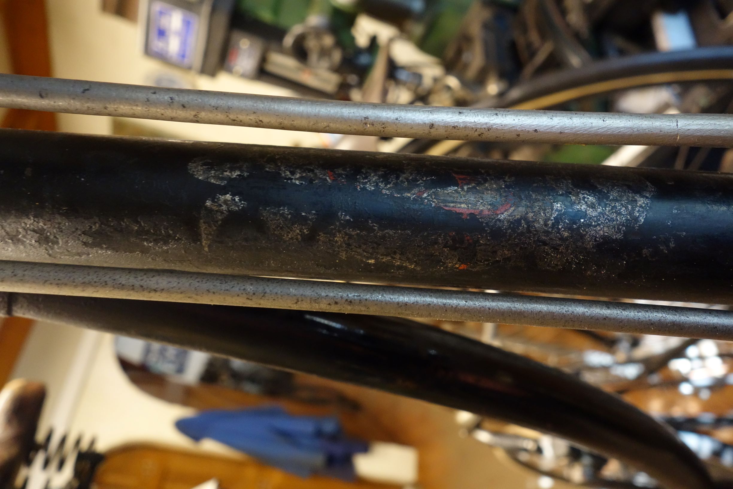 Maar de lak van de voorvork wijkt wat af van het frame en het voorwiel lijkt ook niet origineel.