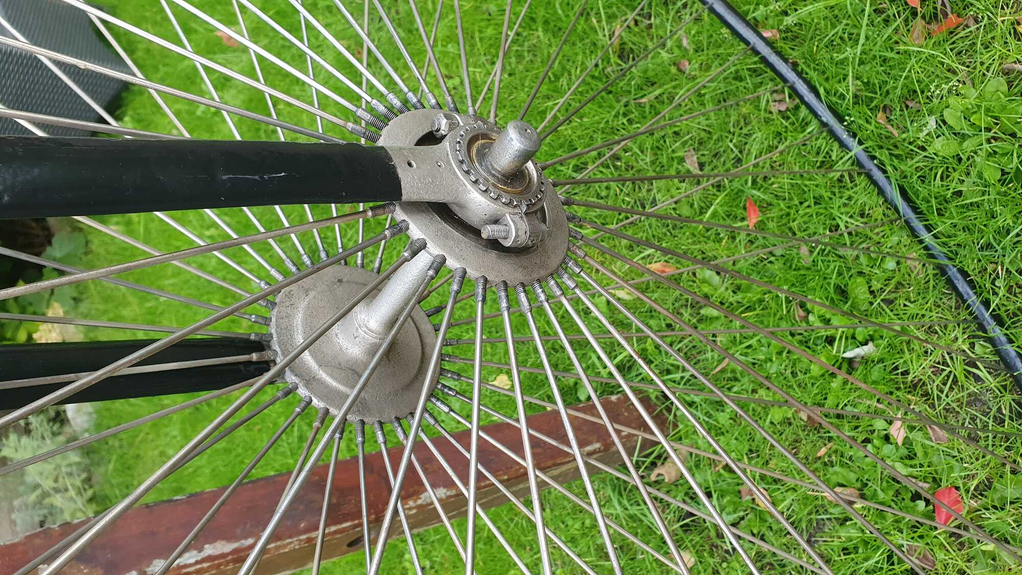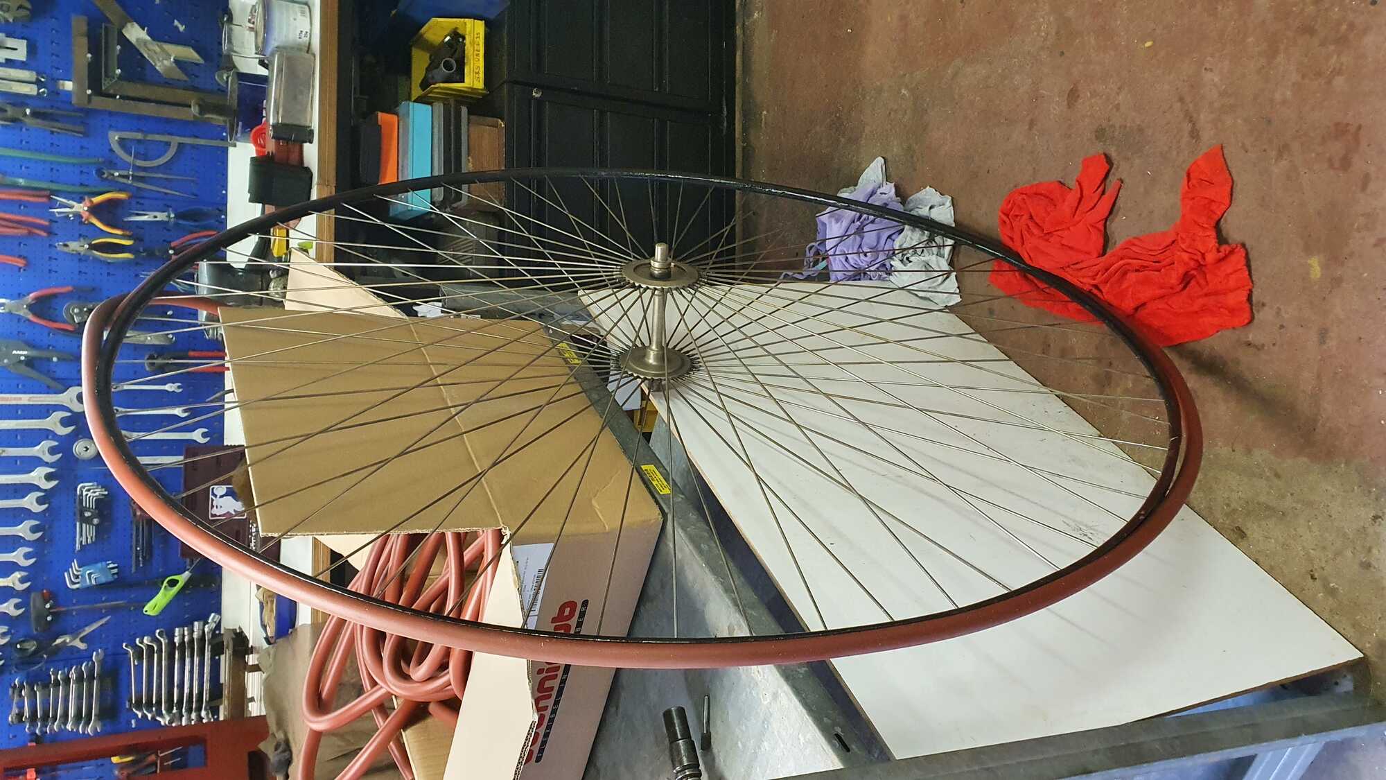 Na de voltooiing van de wielen, kon de voorvork met de lagers bevestigd worden op het voorwiel.
