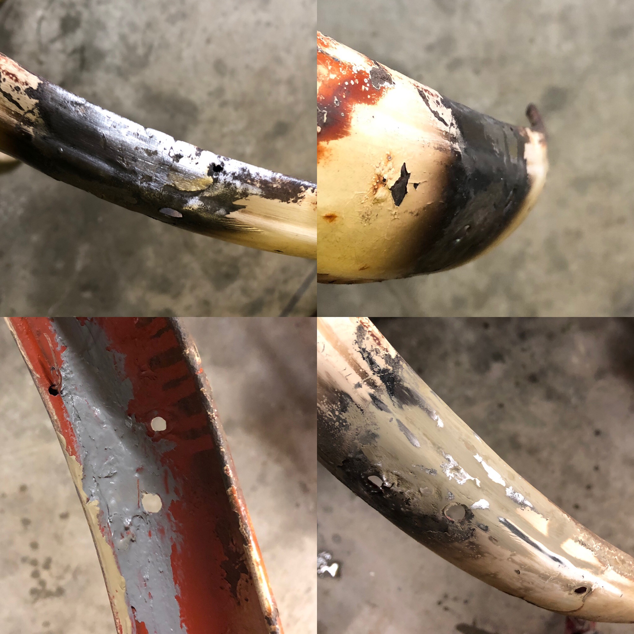 Laten we het er op houden dat de fiets goed en intensief gebruikt is. Ik heb alles vanavond kaal gemaakt en weer gelast. Op sommige plekken aan de binnenkant heb ik de las voor de stevigheid zichtbaar gelaten. Natuurlijk allemaal wel iets bijgewerkt (nog niet op deze foto’s).
