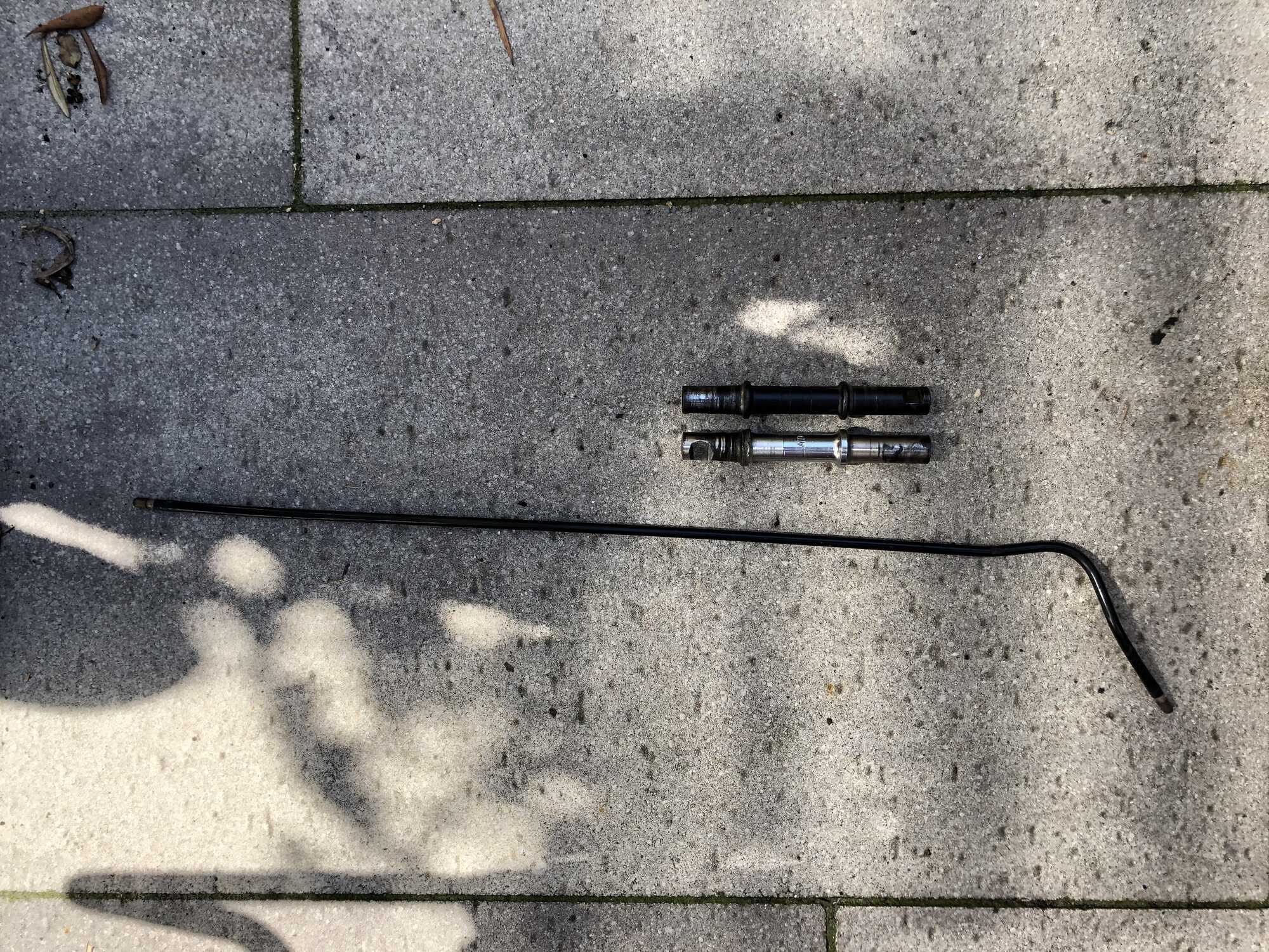 Bijgaand wat foto's (de "holle buis" is de losse op de foto; ik had 'm nagemaakt omdat de draad er onwrikbaar in vastgeroest zat)